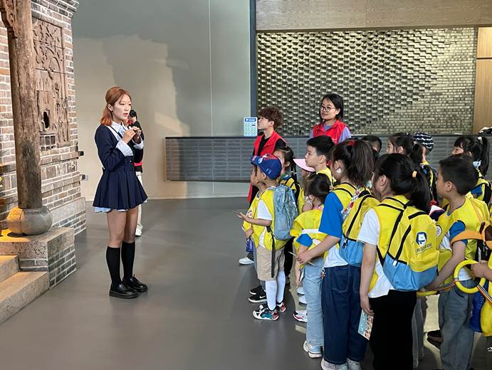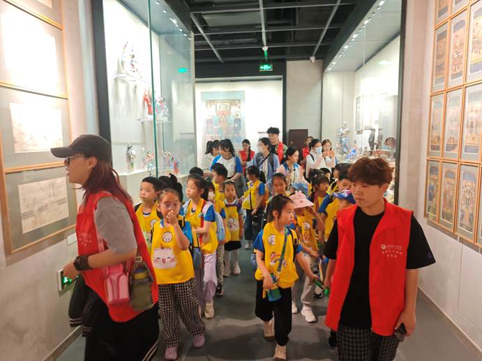 活动伊始,我校博物馆志愿讲解员担任“文化引路人”,带领孩子们开启非遗探秘之旅。讲解员以专业素养和生动语言,将鲁绣、皮影、木版年画等珍贵展品转化为可感可知的文化故事,通过童趣化讲解与互动问答,成功激发了孩子们的探索热情。