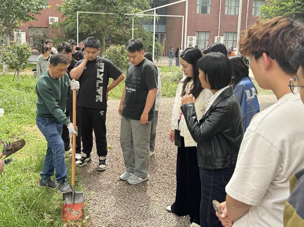 徐建林教授从挖坑、种苗到培土,每一个步骤都进行了细致的演示。随后,参与人员分成若干小组,分工明确,有条不紊地投入到种植工作中。大家手持铁锹,认真地挖掘着种植坑,小心翼翼地将幼苗植入其中,再轻轻培土,固定植株,随后,根据老师们的指导,提着水桶为新种下的花苗浇水,清澈的水流滋润着土壤,也浇灌着大家对校园生活美好未来的期待。在种植过程中,老师们、同学们互相帮助,互相交流,共同学习正确栽种植株的方法,力求将每一株都种植完美,为共同构建美丽的校园而努力。小小的盆栽不仅是美化环境的点缀,更是学生们心灵的寄托,见证着他们在种植过程中的内心变化。