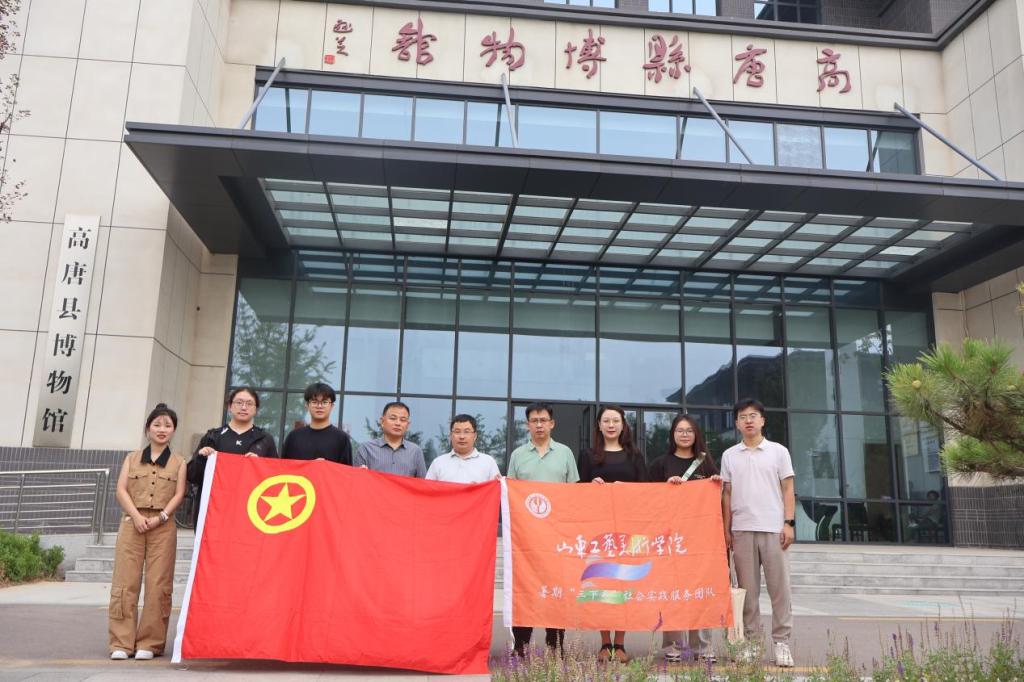 (图为传承团全体成员与高唐县文旅局党组书记刘春菲、高唐县博物馆馆长纪善勤于高唐博物馆前合影)