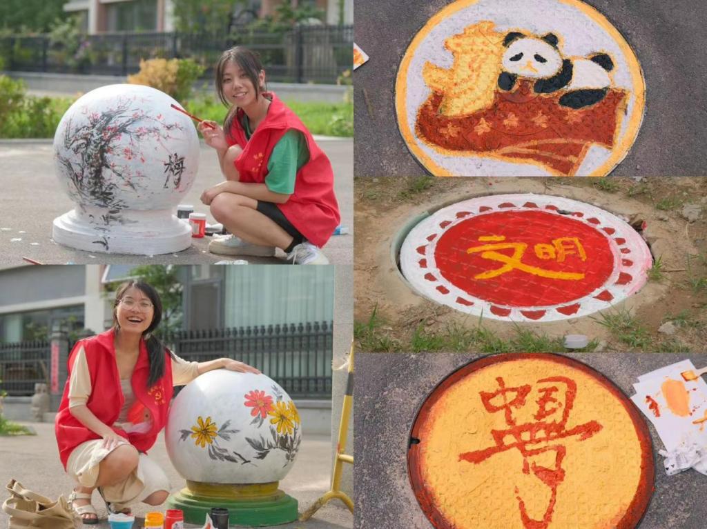 活动伊始,团队成员利用创意绘画的方式巧妙地根据社区基础设施的具体情况进行创作,兼顾构图的合理性、色彩的和谐性和景观的整体性,为一个个不起眼的石墩和井盖穿上了“新衣”。成员们以画笔为媒介,为传统艺术赋予崭新活力,不仅美化了社区面貌,也让更多社区居民了解了国画艺术的魅力,弘扬了中华民族源远流长的优秀传统文化。用绘画艺术传递红色正能量,助力社区文化传播事业,丰富居民精神文化生活。