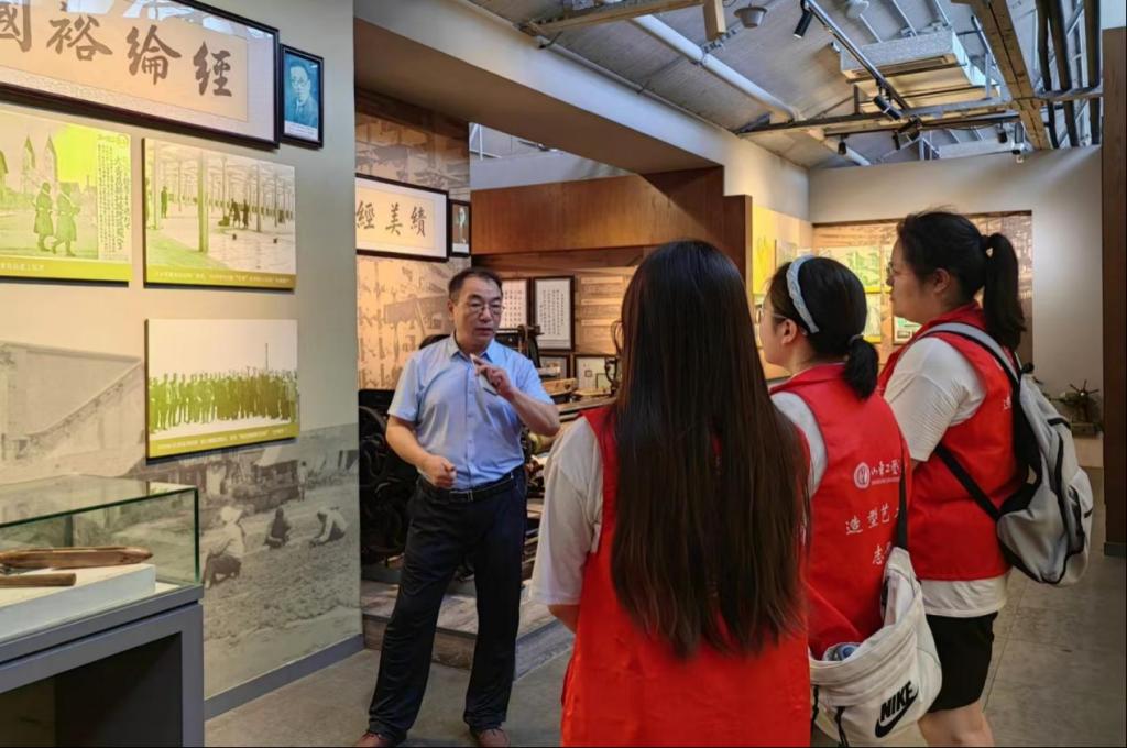 (图为青岛市纺织博物馆馆长为团队成员现场讲解)