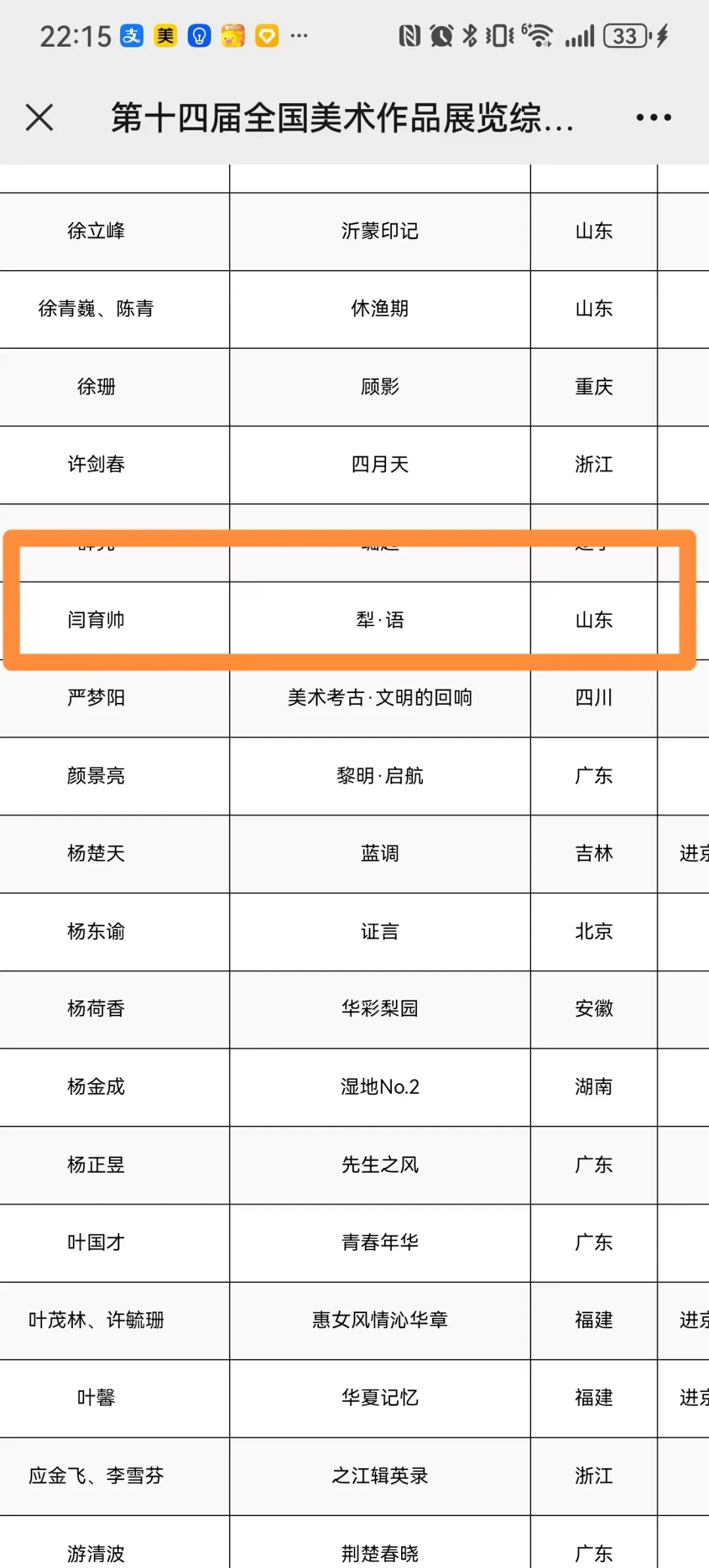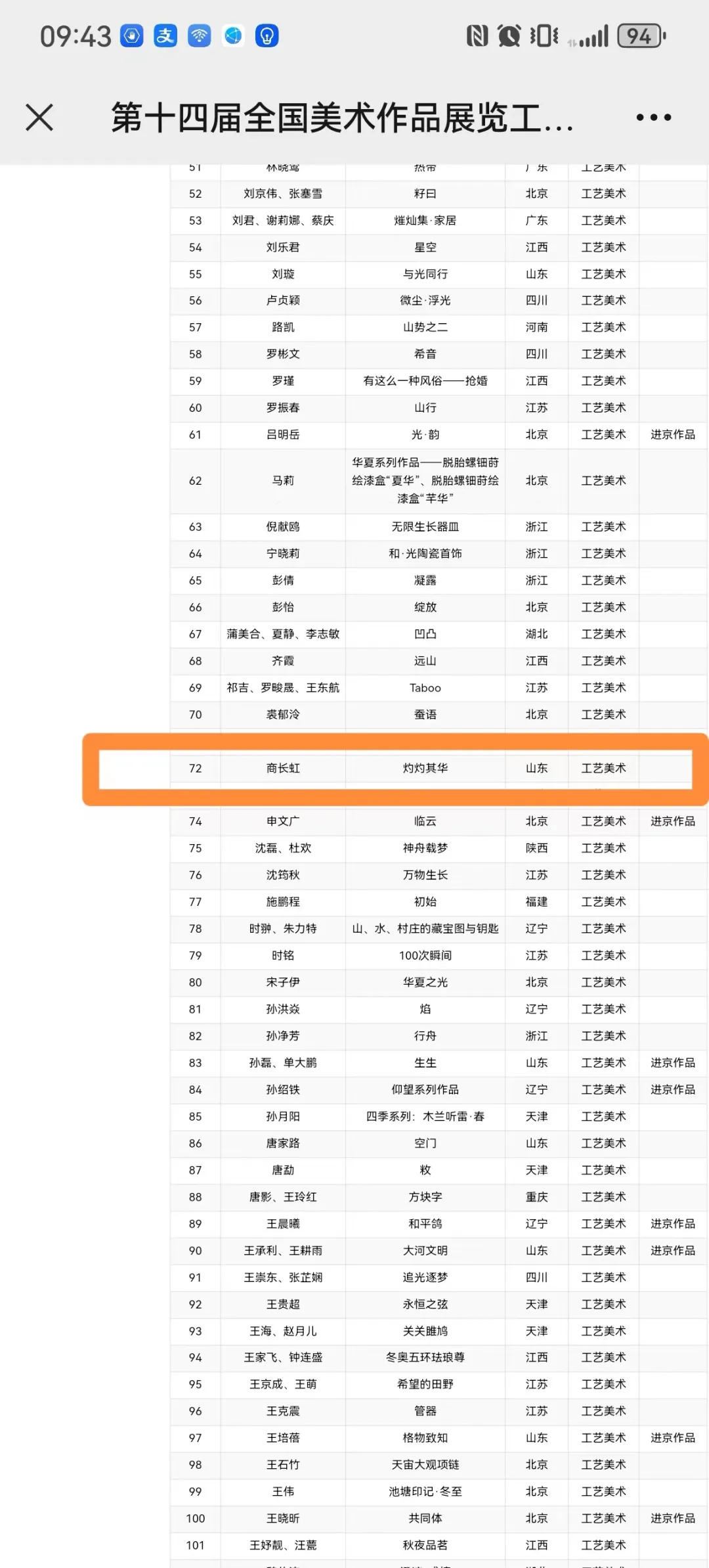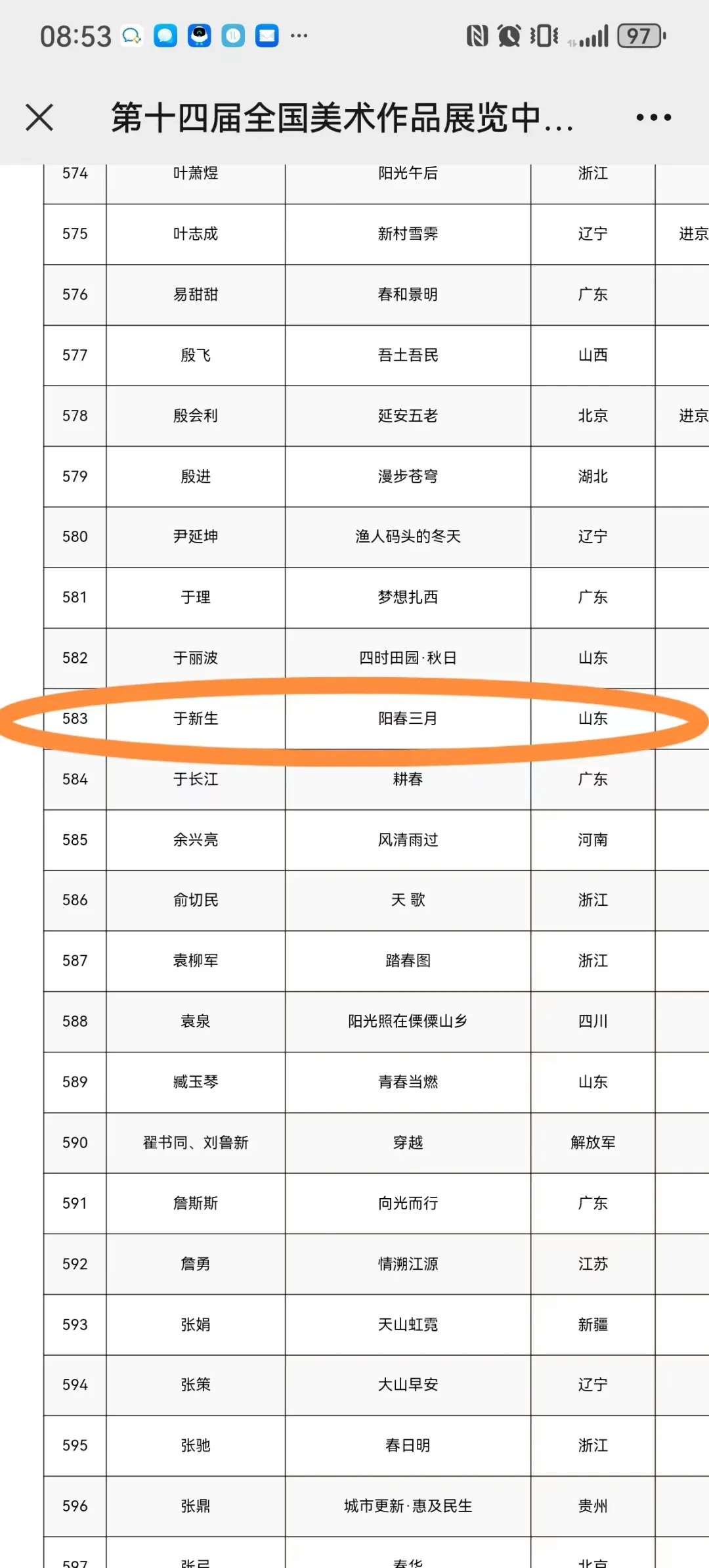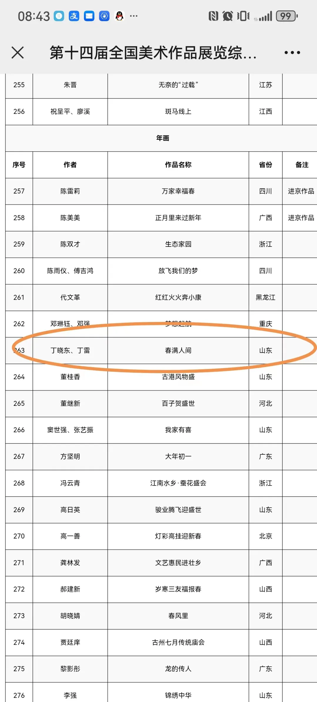 近日,由文化和旅游部、中国文联、中国美协联合主办的第十四届全国美术作品展览各展区作品复评结果陆续揭晓,造型艺术学院呈现出一批精彩纷呈的艺术作品,取得了令人瞩目的成绩。于新生国画作品《阳春三月》,于新生、于笛年画作品《闹春》,刘宁水彩粉画作品《开春第一网》,商长虹雕塑作品《学者》、工艺美术作品《灼灼其华》,丁晓东、丁雷年画《春满人间》,闫育帅综合材料作品《犁·语》总计七件作品入选。