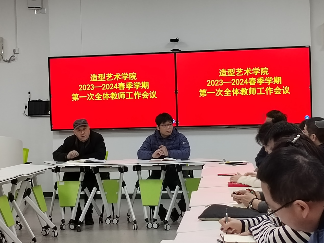为了确保新学期工作的顺利开展,3月6日下午学院召开2023-2024学年第二学期初全体教职工工作会议。会议由造型艺术学院院长刘宁主持,党总支书记李希进及学院全体教职工参加会议。