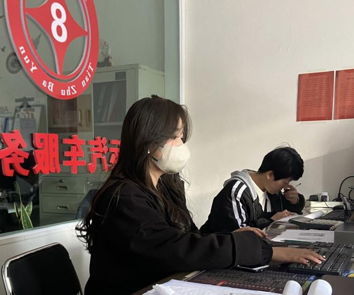 (图为祁雅蓉在学习汽车服务相关知识)