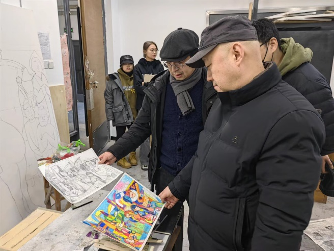 2024年1月15日,为了解毕业创作工作的进展情况,保障毕业创作的顺利进行,造型艺术学院院长刘宁及各教研室主任、毕业班指导老师来到2024届毕业班检查指导毕业创作完成情况。