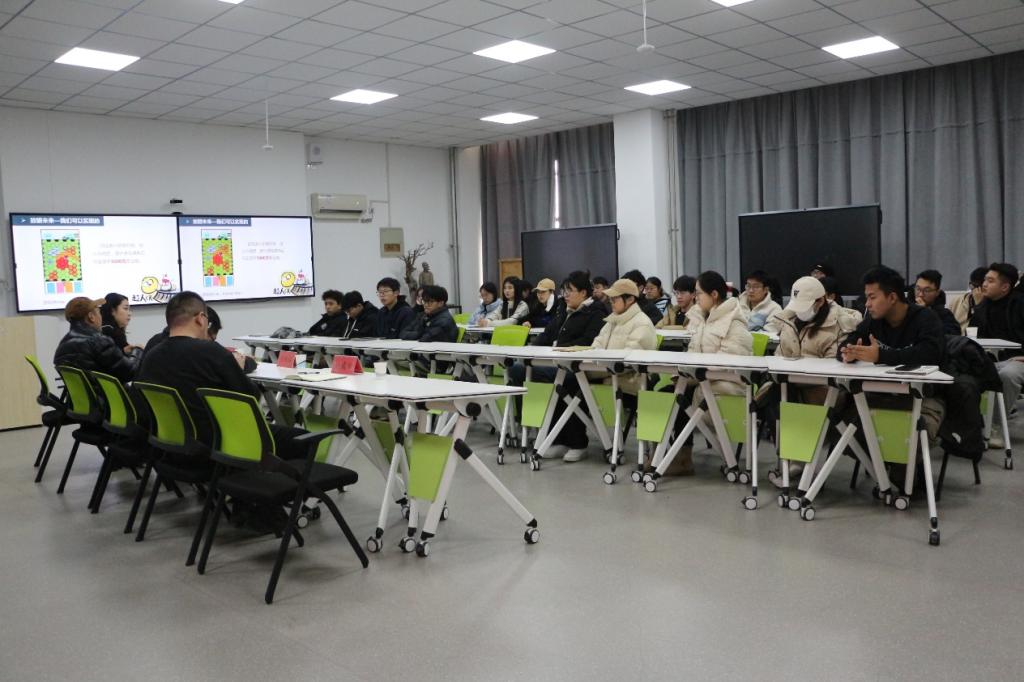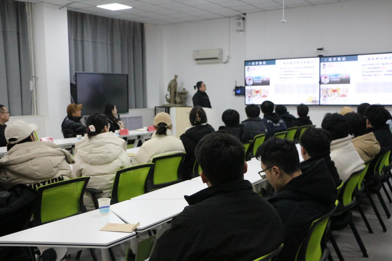 宣讲会现场,毕业班辅导员朱员从毕业生数量、专业方面详细介绍毕业生情况,结合毕业生具体情况提问企业负责人。山东卜氪文化传媒有限公司董事长张明祥先生通过PPT为毕业生介绍其企业文化和发展历史,再分别从薪资、福利待遇、师资培训、招聘需求、公司发展前景等方面展开详细介绍。