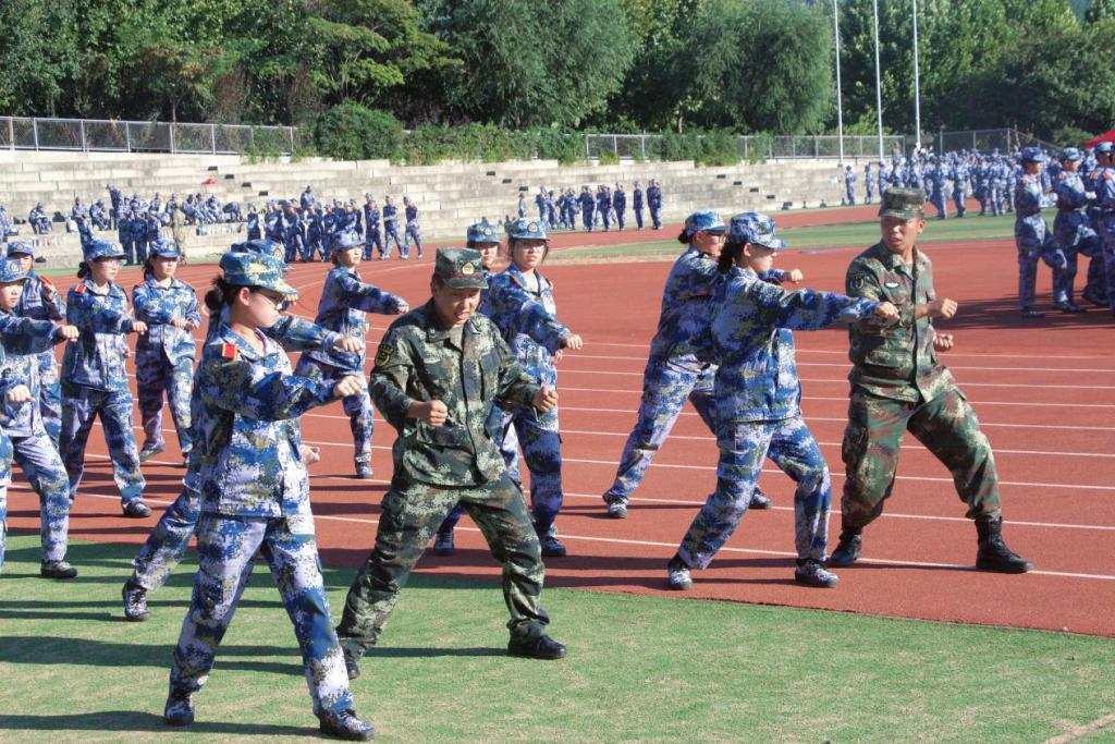 伴随早晨逐渐升起的太阳,一天的操课从站军姿开始,阳光透过云层洒在他们坚毅的脸上。“抬头挺胸收腹,双眼平视前方,双手紧贴裤缝”。训练中,豆大的汗水滚过新生们被晒红的面颊,教官们的嗓音微微嘶哑,为了保证队伍的整齐和队列动作的标准,无论是教官还是同学们都没有一丝懈怠的想法。在较为紧凑的时间内,站军姿、停止间转法、齐步走、正步走、军体拳等预定训练科目已初见成效,教官手把手教,新生们认真地学。在日常队列训练中,方队整齐,精神饱满,步伐矫健、口令准确、声音喷亮。