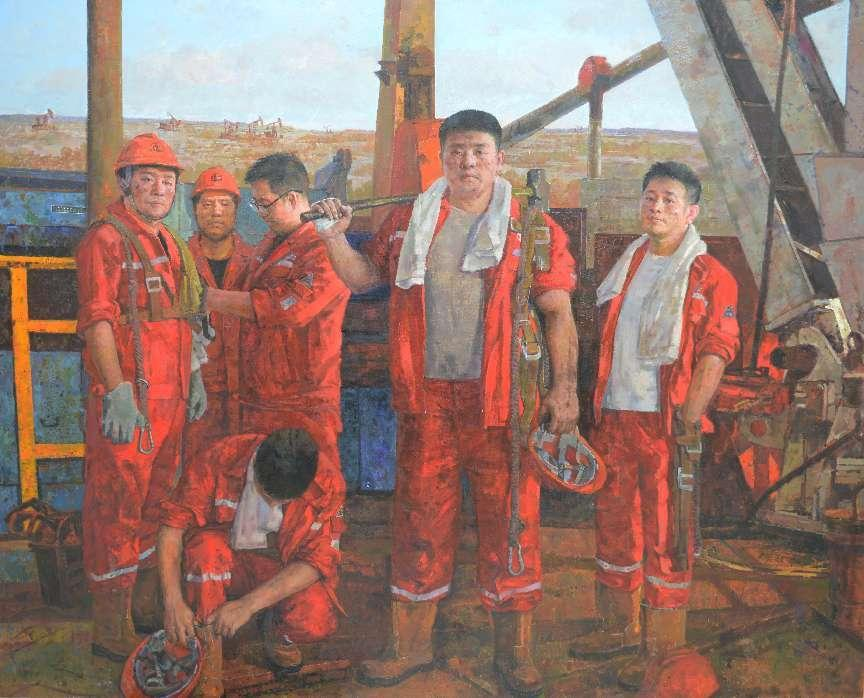于向志《红色赞歌新时代石油人》油画200×250厘米