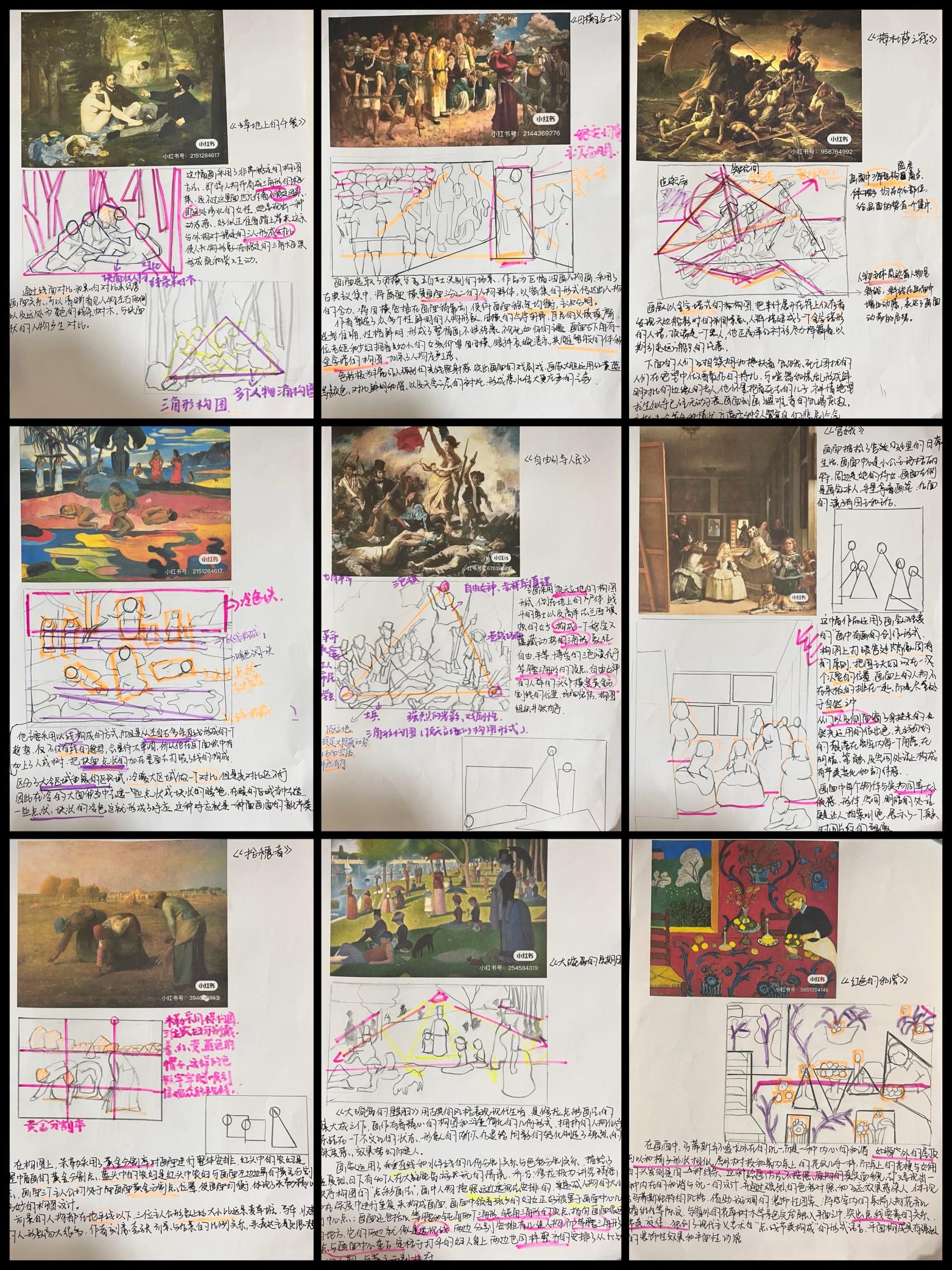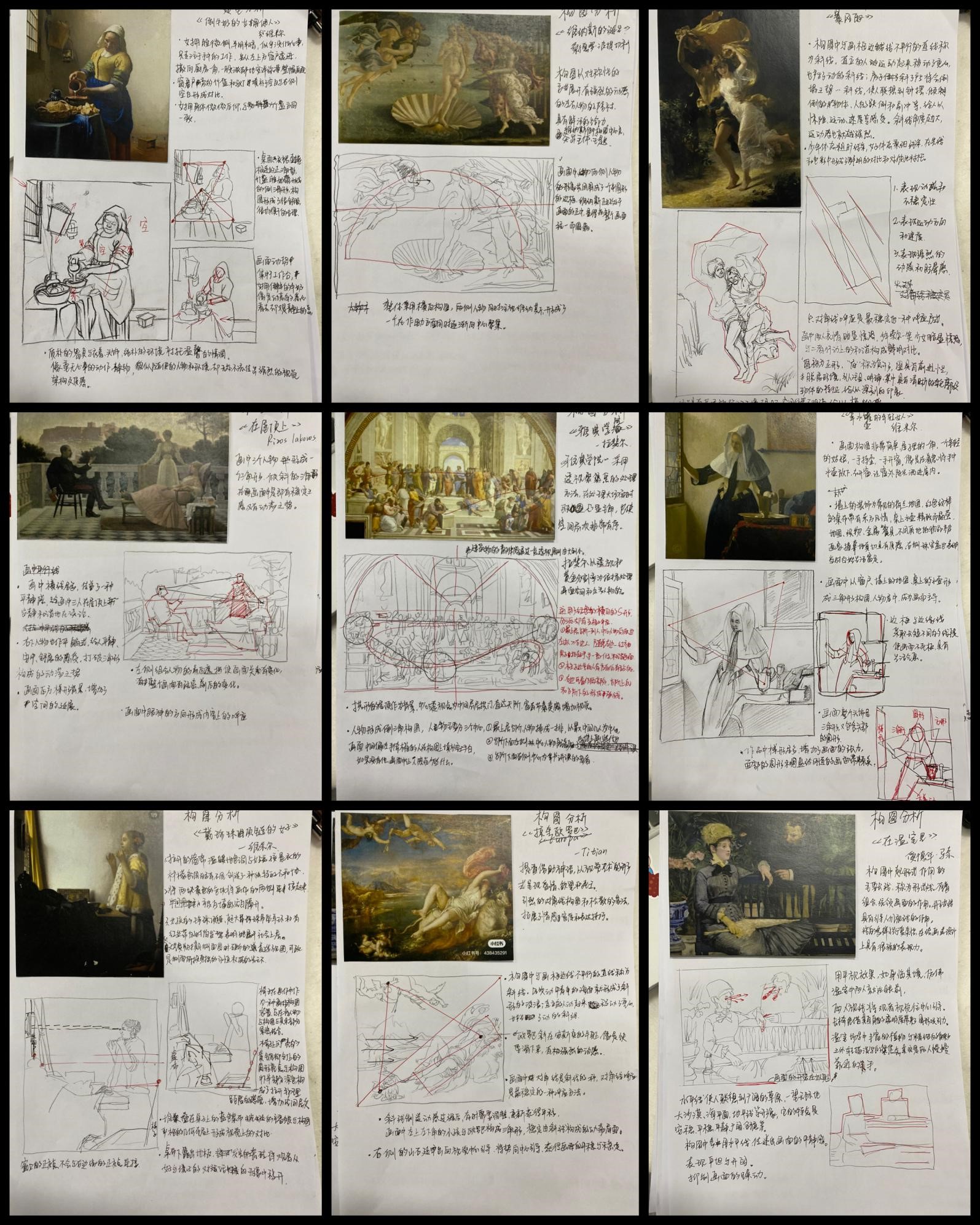 作业要求:大师经典作品构图鉴赏与分析+搜集素材+线稿