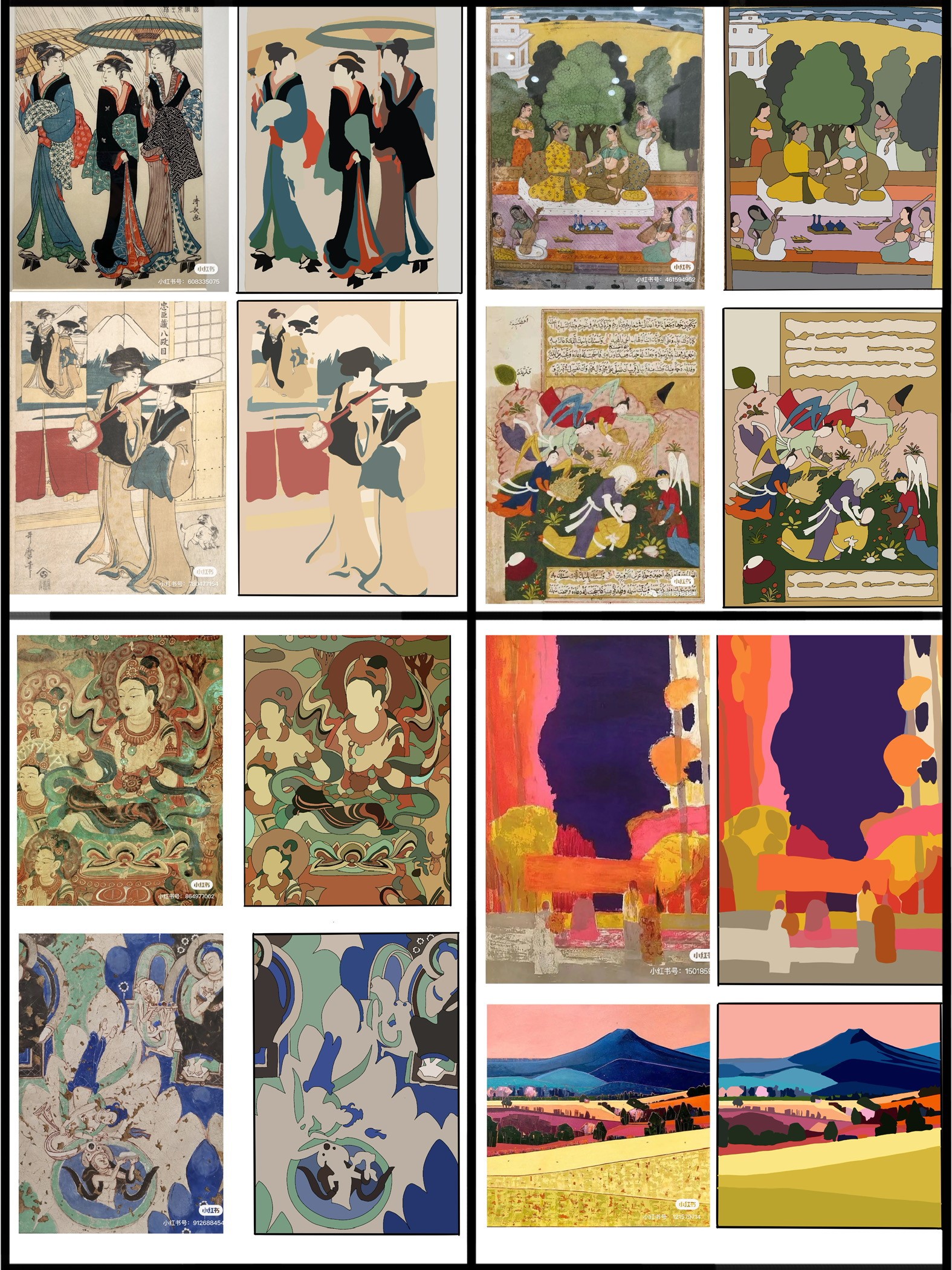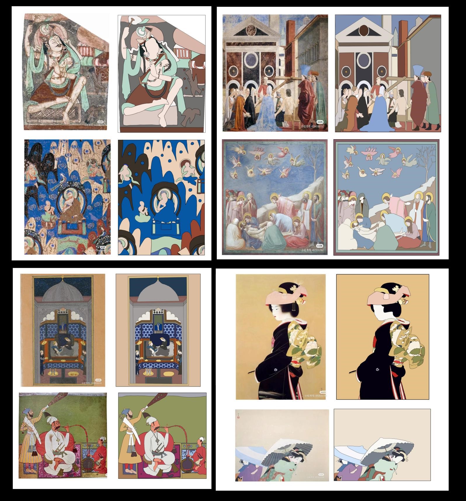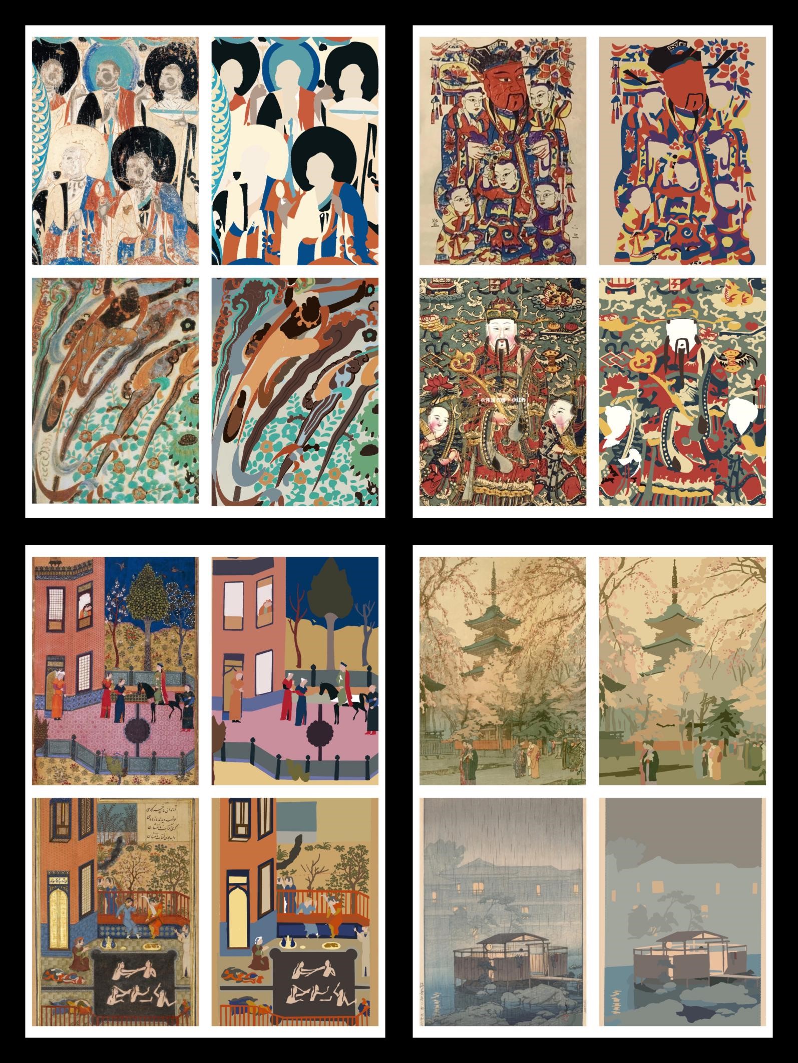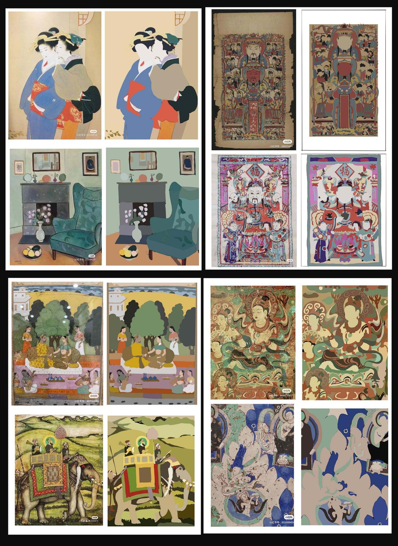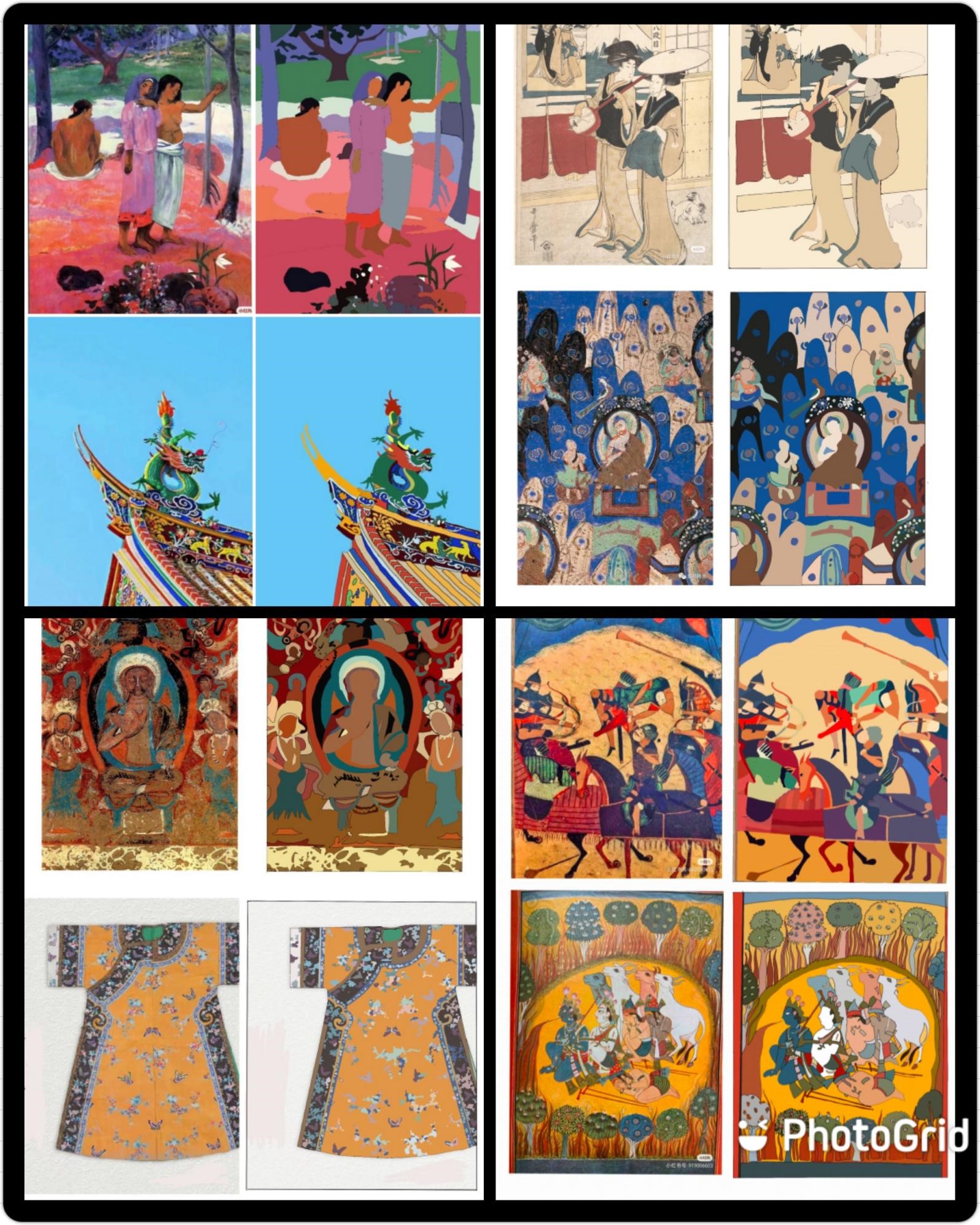 从经典作品和民间美术中进行色彩的提取,熟练掌握中外经典作品的色彩搭配和色调安排,学习民间美术中的配色,在传统艺术样式的基础上进行现代转换,力求掌握传统艺术的色彩并能进行当代语言的转型。