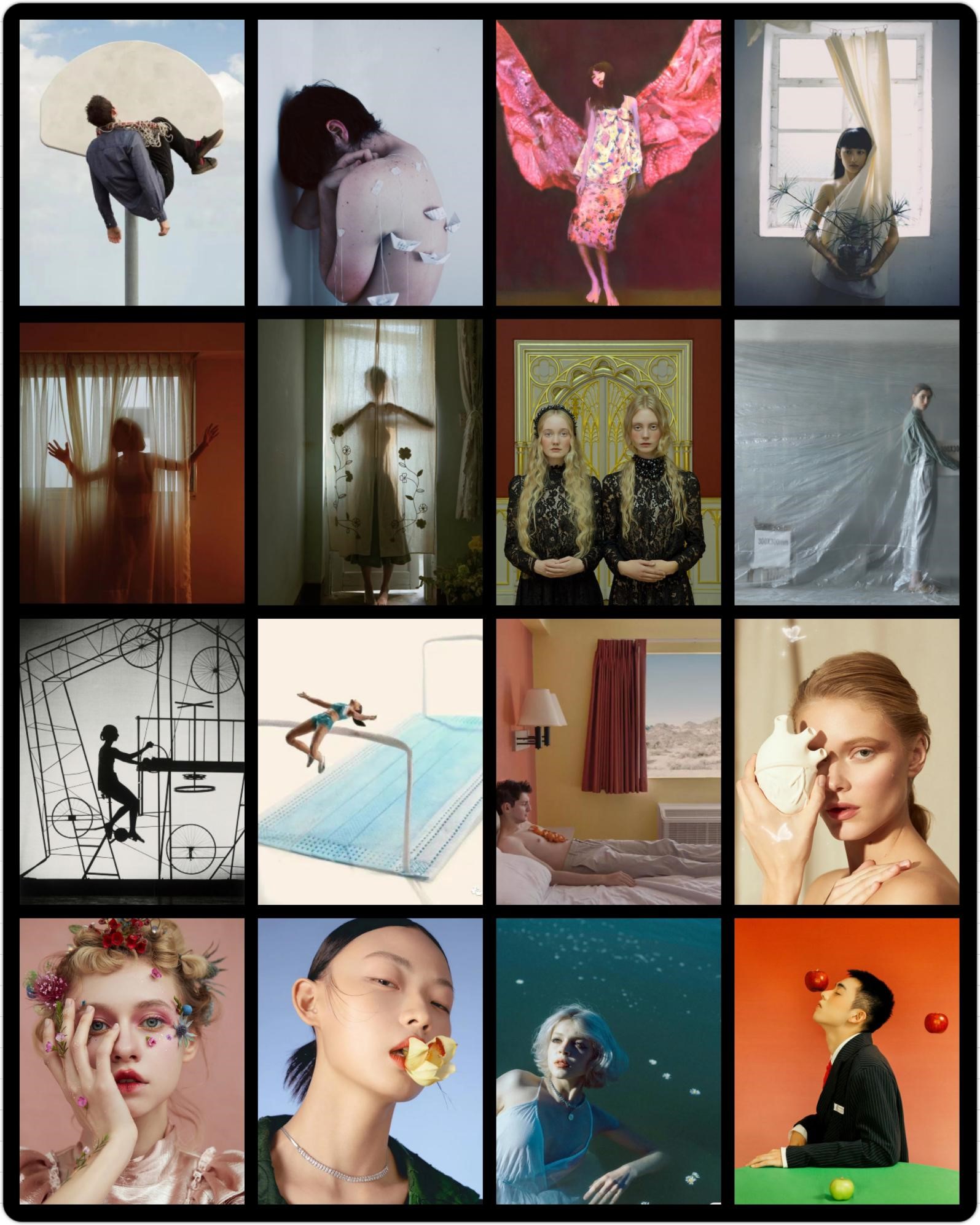 每位学生搜集50-100张创作素材。根据每个学生选取的50—100张素材逐一进行讲解,通过观念摄影、艺术摄影作品进入到创作的通道。通过借鉴摄影、插画等其他艺术样式,丰富自身创作的构图、造型、色彩、风格。