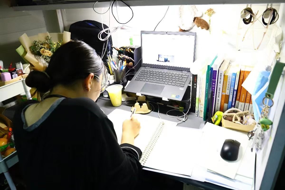 战“疫”期间,造型学子牢记学习的本职工作,扎实上好每一节网课,认真听讲做好笔记,充分利用好宿舍的安静氛围,为我所用,努力学好专业课和公共课。在网课之外的闲暇时间里,同学们亦不忘学习新技能,练习绘画、熟悉办公软件、设计软件等等,空间有限心无边,充实丰盈自己,提升综合素质。