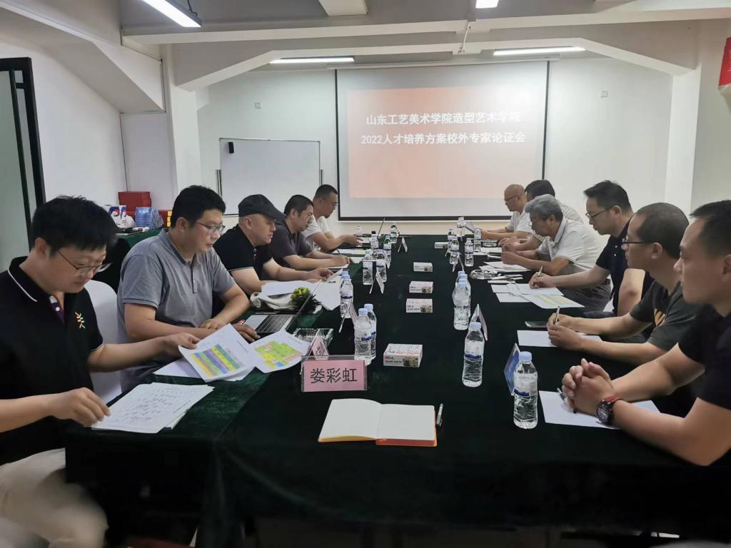 为进一步完善2022版人才培养方案,7月25日上午造型艺术学院在学院校企合作单位石榴餐饮集团会议室召开中国画、油画和壁画专业人才培养方案校外专家论证会。会议邀请山东省政协常委、山东师范大学博士生导师刘青砚教授、山东艺术学院硕士研究生导师马麟春教授,齐鲁师范学院美术学院院长杨三军教授,山东艺术学院美术学院中国画系主任杨斌教授作为本次校外论证专家出席会议研讨,济南石榴餐饮集团副总经理赵坤参加会议。造型艺术学院院长刘宁主持会议,造型艺术学院中国书画教研室主任丁雷、油画教研室主任刘劲蓬、壁画教研室齐敬峰、公共艺术教研室主任杨勇智及国画教师代表陈凯和教学秘书娄彩虹参加此次论证会。