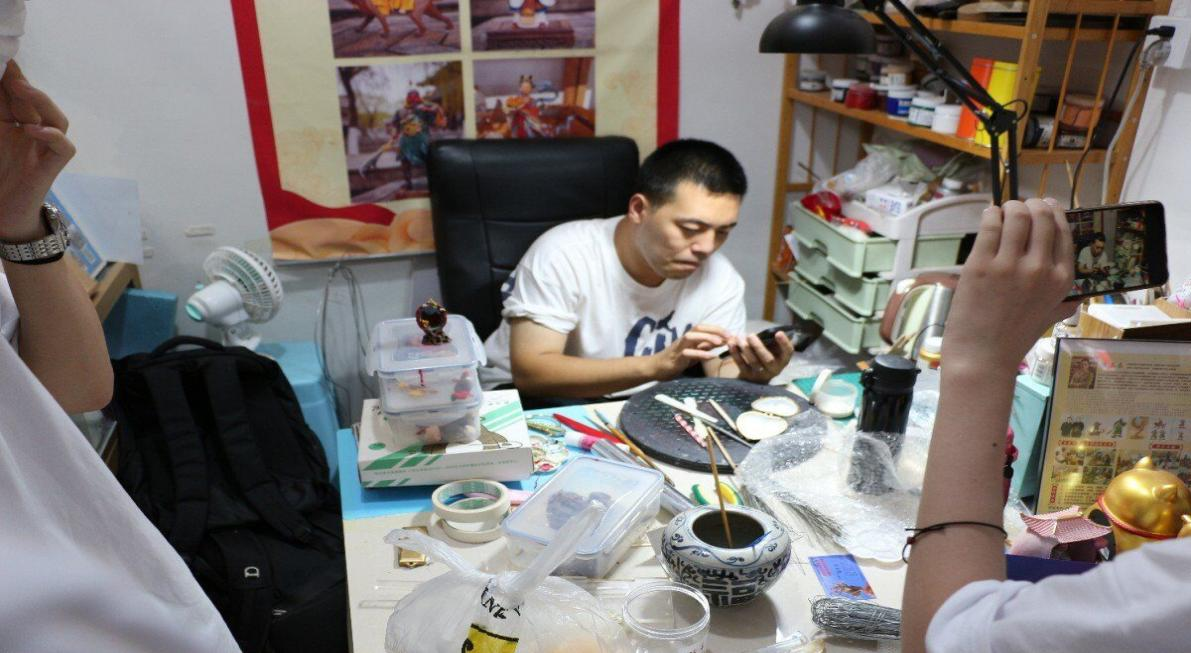 调研团成员实地走访了济南市、东营市的非物质文化遗产,其中包含沙画、葫芦烙画、唐锦彩、面塑、鼻烟壶内画、兔子王、留年旗袍、佛头黑陶等近20项具有代表的非物质文化遗产,并与非遗传承人进行了学习与交流,了解了沿黄流域非遗文化的起源与发展。