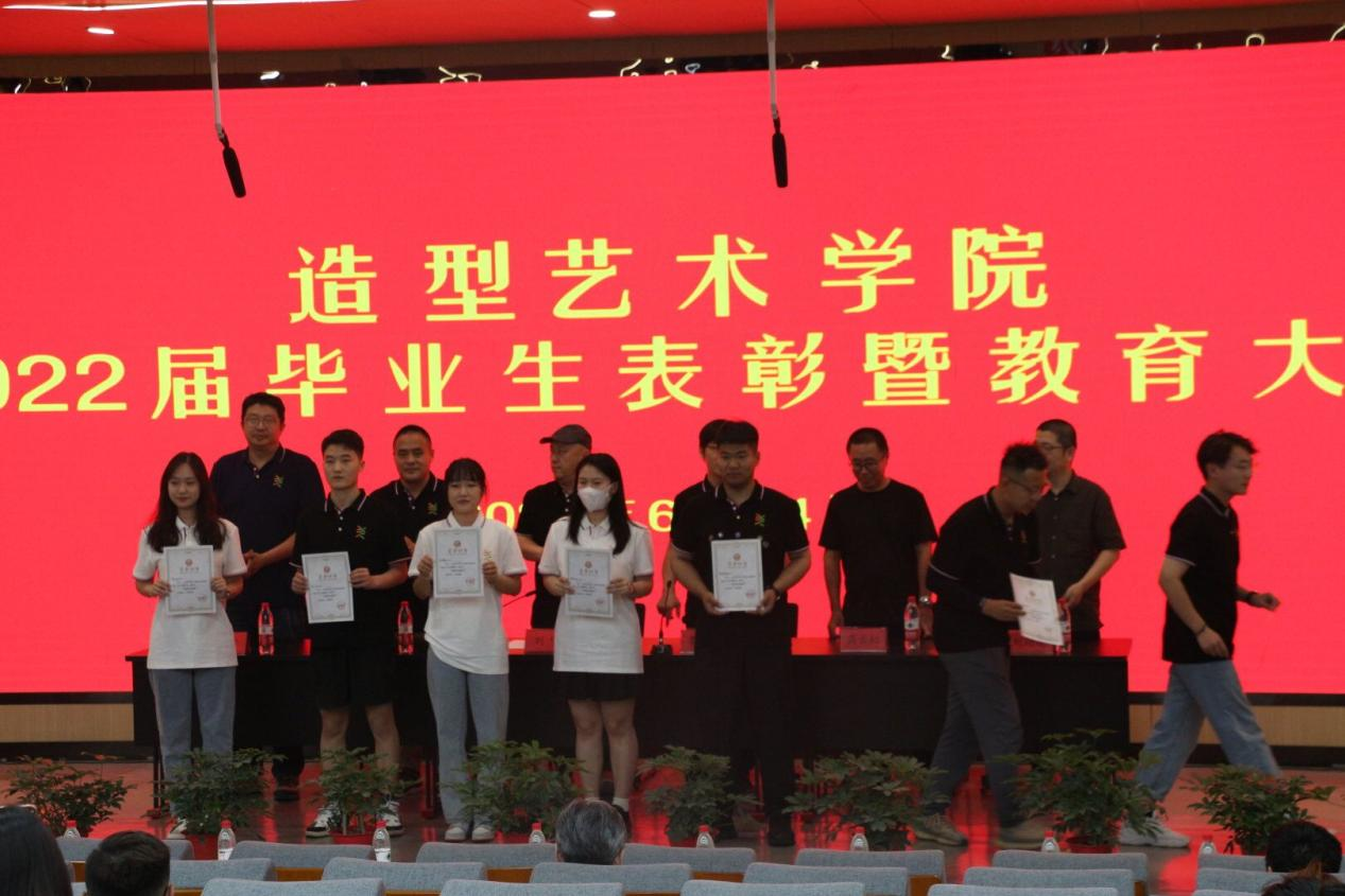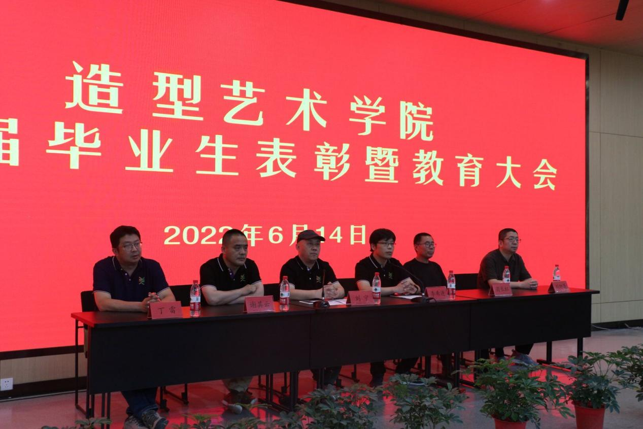 为引领毕业生坚定理想信念,明确离校后的奋斗目标,6月14日下午,造型艺术学院在长清校区阶梯一教室举行2022届毕业生表彰暨教育大会。大会采取线上和线下结合的方式。参加本次大会的有学院领导班子、教研室主任、专业课教师、辅导员以及学院全体2022届毕业生,会议由毕业班辅导员谢军主持。