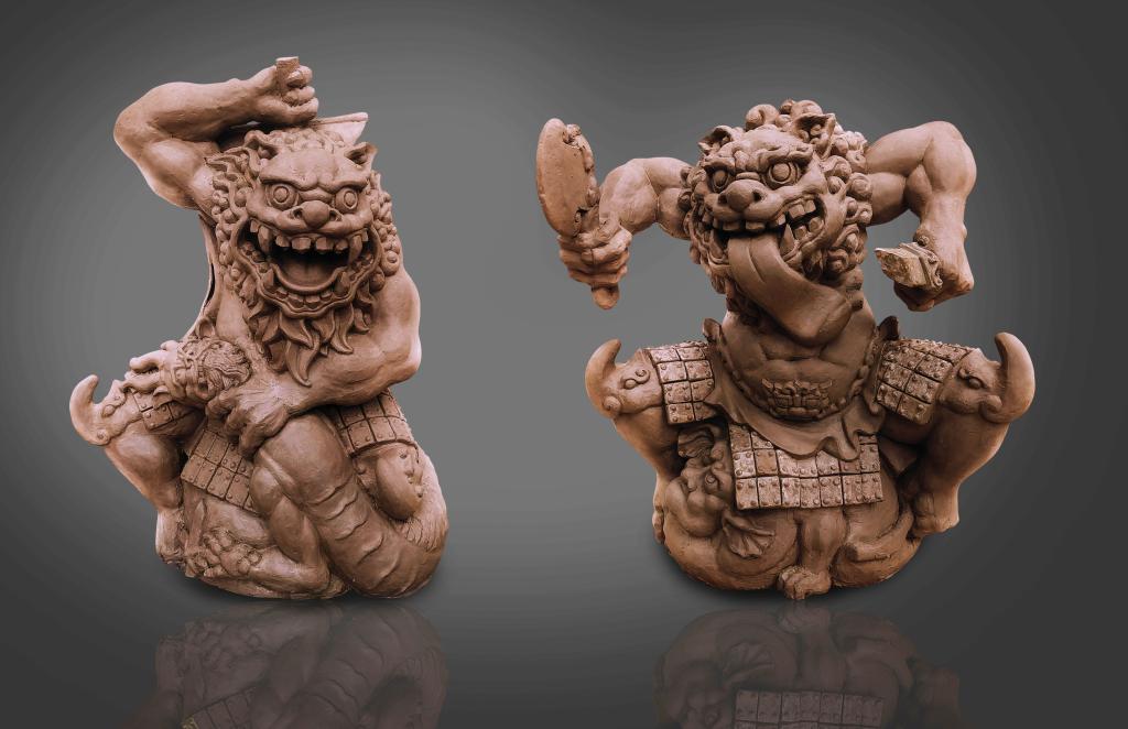 作品简介:“震惊百里,不丧匕鬯”灵感取自古代宗庙祭祀的方相氏,作品用意为辟邪祈福,百姓安堵,执利器为国家驱疫。当下疫情肆虐,愿尽绵薄之力,展现出中国传统造像以及中国传统文化的风采,望君欣欣兮乐康。
