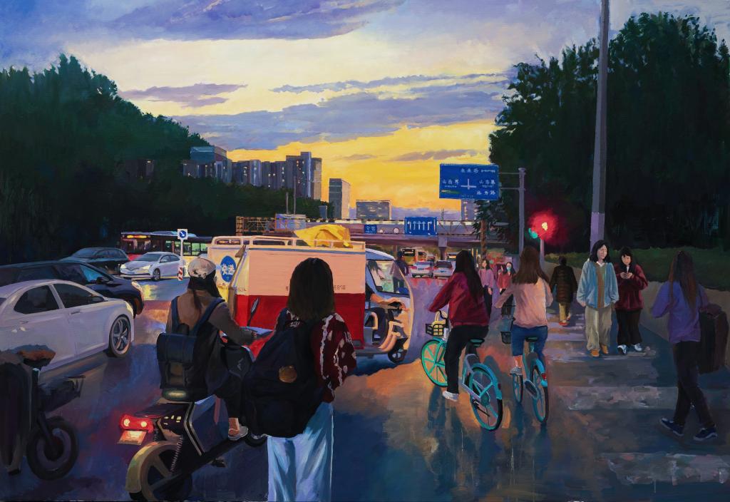 作品简介:现代社会,生活节奏不断加快,人们未来生存而四处奔走,动物也未来适应环境而迁徙。本作品描绘了一幅人与动物正在奔走的场景,各种姿态的光影相互重叠、交织,所呈现的画面引人深思。