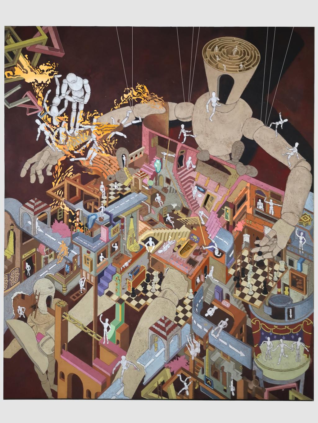 作品简介:作品的名字《寻找爱丽丝》提出了这样一个问题:“爱丽丝在哪里?”这是我给画面中的众多人物提出的问题,同样也是我向观画者,向我自己抛出的问题。
