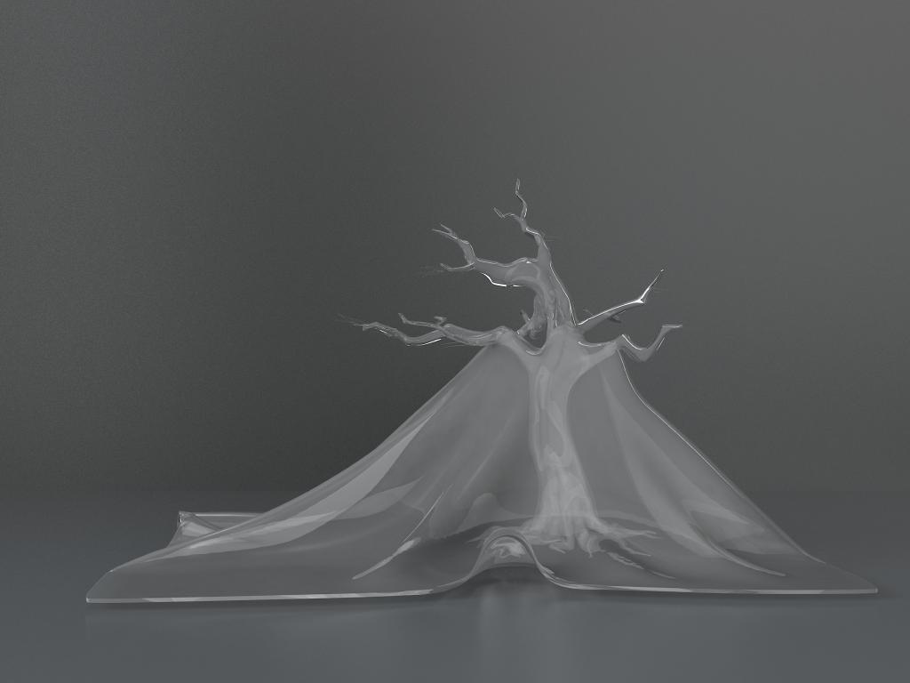 作品简介:树形象征着大自然,布象征着人为力量对大自然的干涉,自然在无声的忍受,他们不会反抗,只会通过自己的衰败和自我毁灭来让人们看到利用不能的苦果。人类当前与自然的关系实际上很大程度上依然是人利用自然的关系。作品想表达和反对也就是这种现象,人们对于自然的无情利用,没有节制,这里借用树的形式将这一切深刻的展现出来,以生态为题,营造一场悲剧性的情景空间,体现透明材料的自然属性、空间表达与意境传递,借用树与布的形象表达对人与自然相处模式的一种反思,将传统的宋代文人画中树的造型元素应用到雕塑上,保留中国古典的美学。