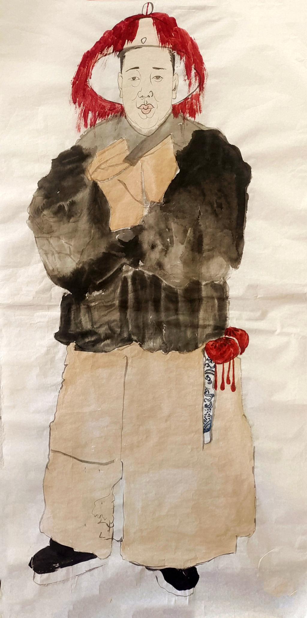 这次画的主题是以戏剧为题材,艺术源于生活,并高于生活。将现实世界中的人物形象与生活场景进行艺术加工,将现实的实物转化成艺术的图示拼接。将水墨效果以平面化进行处理。