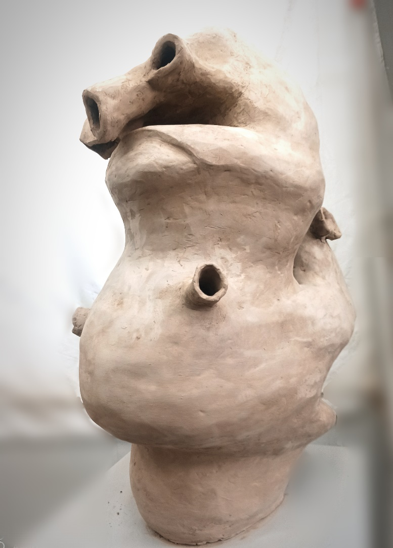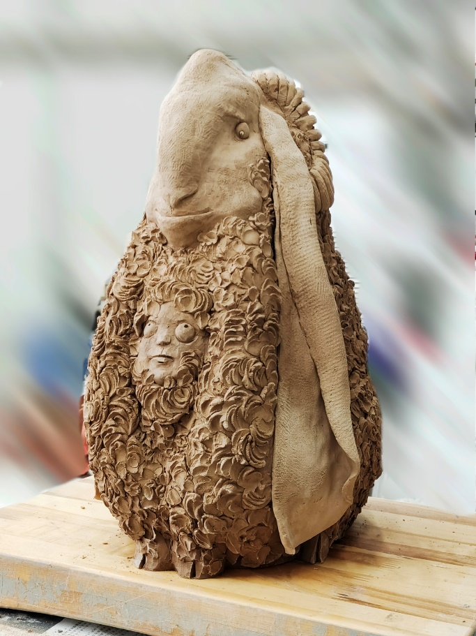 作品名称:《泥条盘筑练习—小丑鱼与珊瑚礁》作品尺寸:64*50*32cm