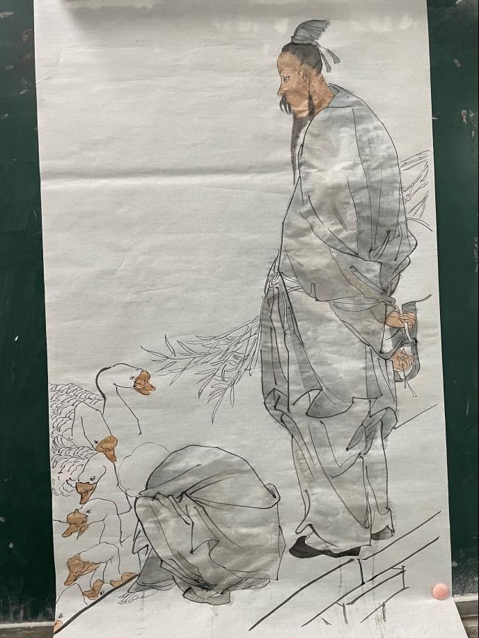 本次课程的授课对象是大三下学期的同学,其重要的现实意义在于,学生通过经典作品分析、立意构思、小构图练习、黑白稿色彩稿练习、初稿、正稿创作等一系列创作环节的体验与学习,初步掌握创作一幅完整的中国人物画作品的能力,为四年级的毕业创作打下良好的基础。