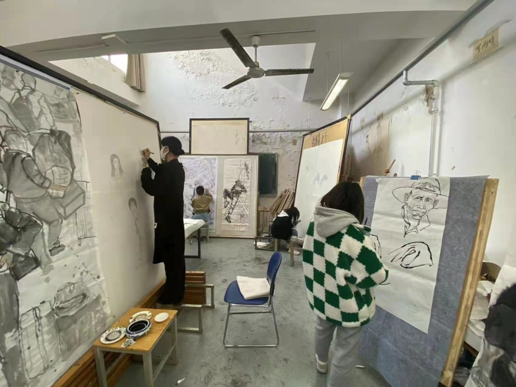 针对“内容”的问题,本课程秉承“思政+艺术”的教学理念,关注作品立意的文化品味、人文内涵,从身边入手、从细节出发,注重艺术语言表达的丰富、个性语言的抒发,从校内探查校外、从“云端”投视社会,立足现实、体味生活。在教师的引导下,每位同学均根据自身创作经验与日常关注的群体以及对艺术、对生活的理解,选择想要表达的题材与主题,其中有的通过描绘自己身边的人或事,表现当代社会的美好生活与风貌,有的通过表现农民或工人的劳作场景表达对当下劳动人民的关注与感情,有的通过再现自己家乡富有特色的民俗活动表现对非物质文化遗产保护的探寻与关切。