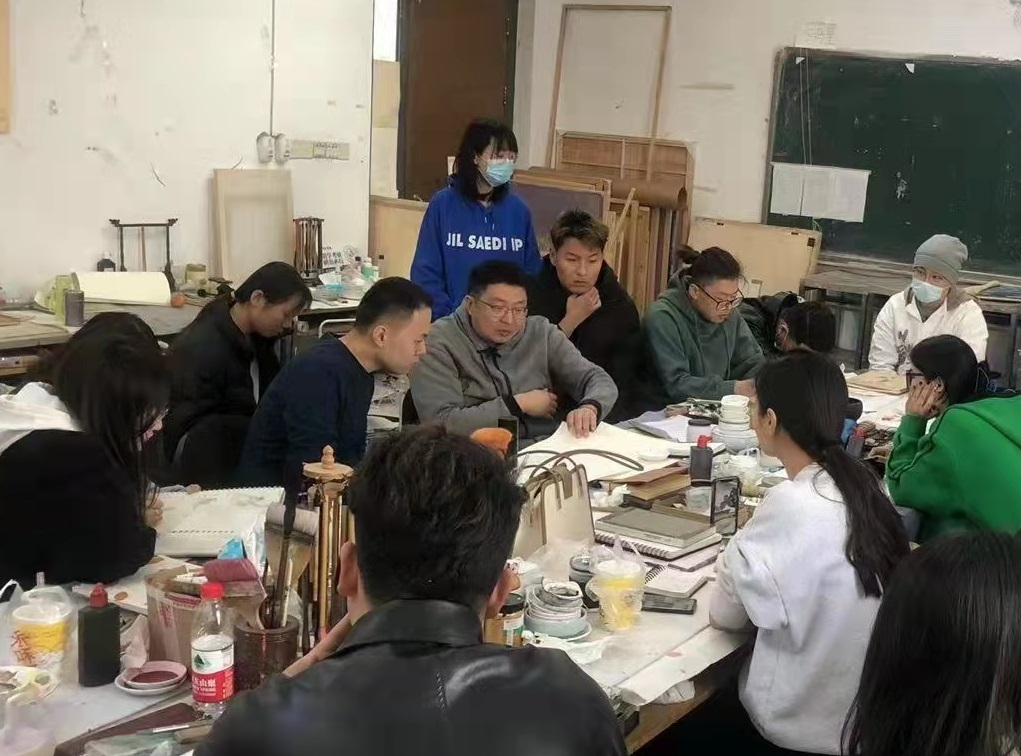 美术创作本质是一种个性化的、创造性的行为活动。在教学中,创作手段和方法的掌握,既要充分发挥学生的主观能动性,也要“因材施教”,发挥课堂教学的针对性,所以,创作课程的教学非常注重教师对学生一对一的指导和探讨。美术创作的过程往往是连续的、不间断甚至一气呵成的,课上的学习时间是十分有限的、是难以满足创作实际需求的,尤其是创作理念的延续和完善,作品表达的充分和完整,都需要将教学所在的所有课上下时间纳入教学,扩充教学进行的范围,才能帮助学生实现作品的真正完成。在目前线上教学的条件下,更加需要利用信息平台,增加师生交流、拉进教学距离,深入创作专业探讨、挖掘创作情感理念。所以在教学实践中,任课教师除了课上的辅导与讨论外,课下也及时与同学通过微信、QQ交流联络,为学生及时答疑解惑。
