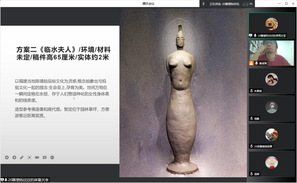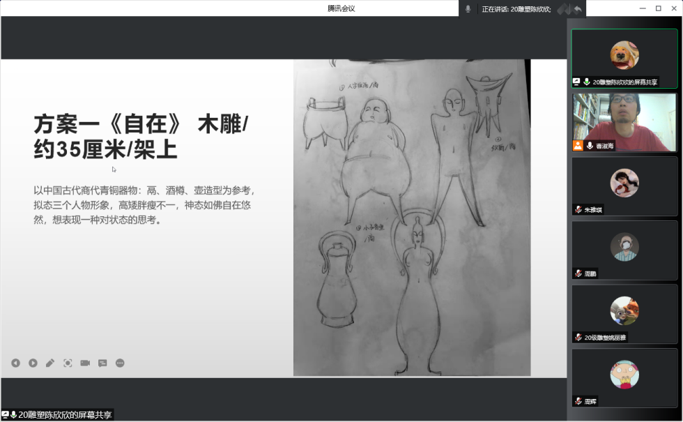 针对线上课程交流不足的缺点,我特别强调师生的互动:一是加强课前相关知识的预习,目的使让同学们了解相关知识,逐渐收心,进入学习状态;二是在线理论课堂上的讲学互动,线上教学师生对着电脑,容易走神,我就特意的增加提问和讨论环节,增加课堂互动性。在创作实践课程中,课下的方案构思设计,我要求随时汇报草图进度,检查作业完成情况,随时构图讲解。再有就是让同学们做总结写建议意见,根据同学们所需,共同打造高质量线上课堂。