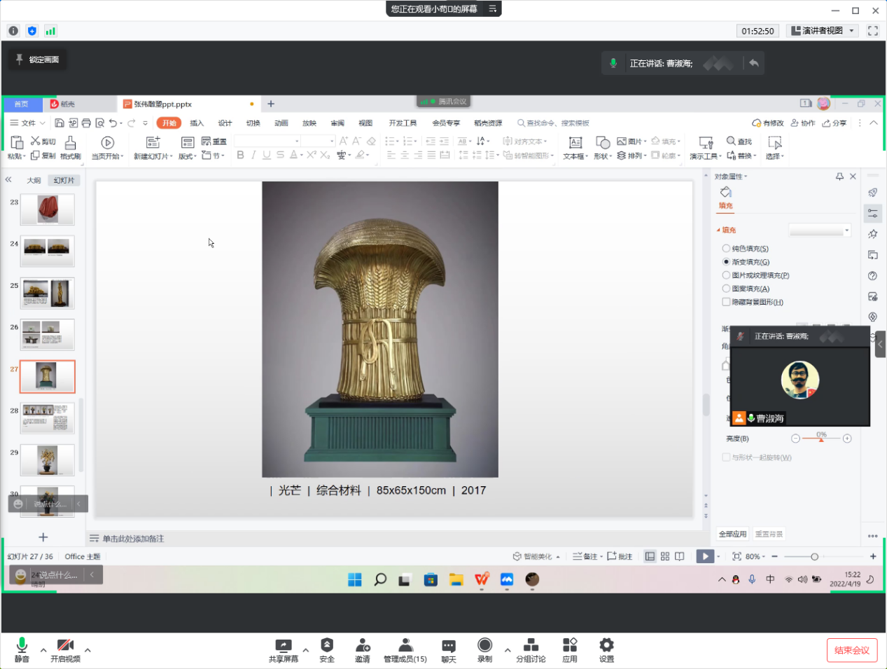 曹淑海老师通过腾讯会议在给同学们上课。