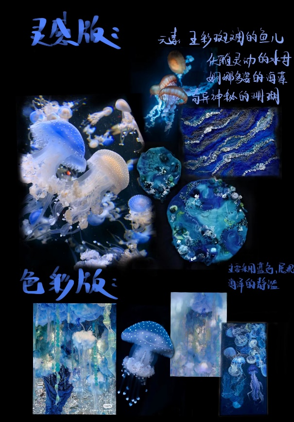 本课程共三周,因受疫情影响导致大部分同学没有材料无法进行方案制作,因此调整课程训练内容,主要以方案设计为主,梳理创作的设计过程与方法,培养感性创作,理性思考的设计思路。