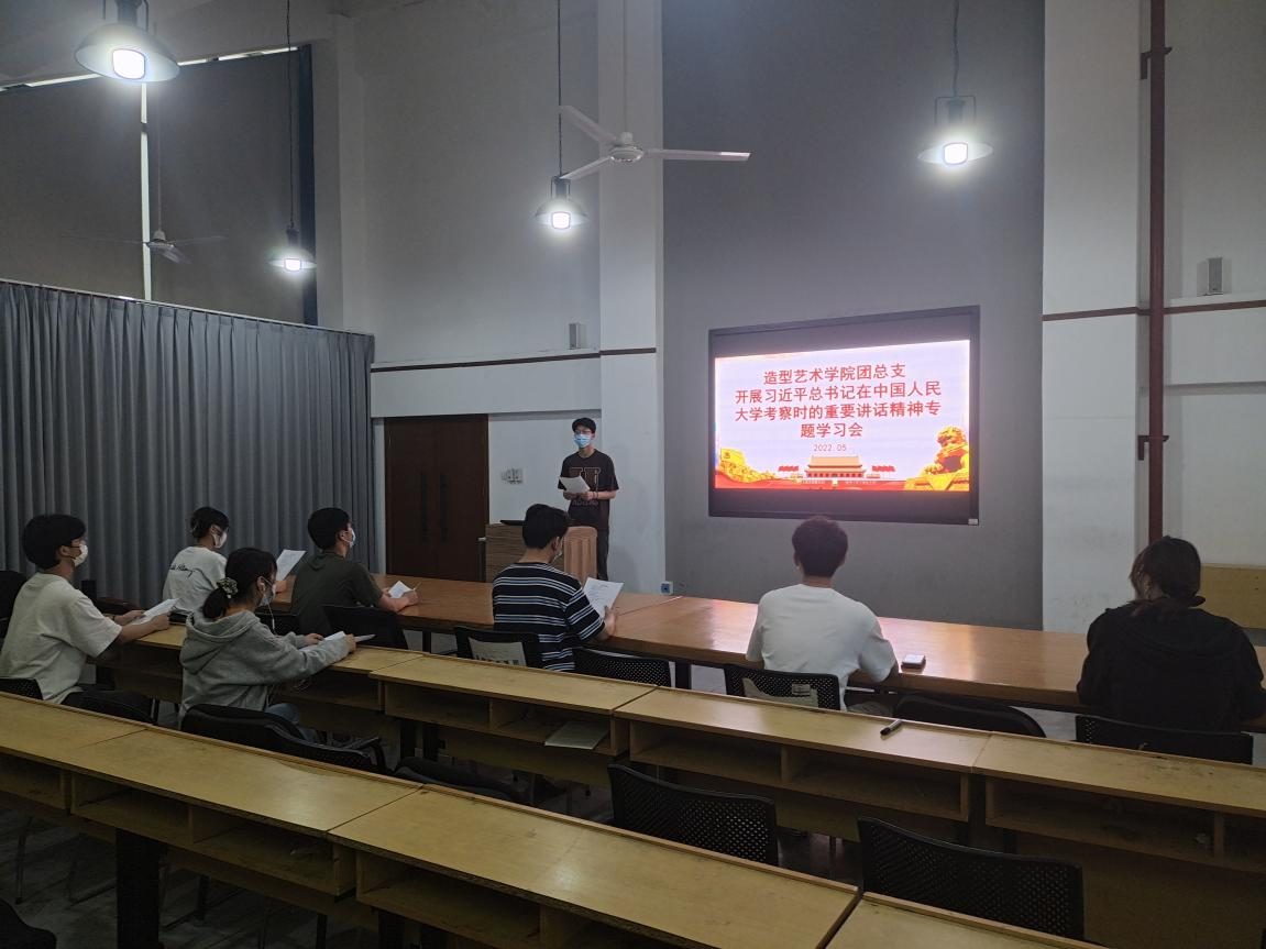 在五四青年节即将到来之际,中共中央总书记、国家主席、中央军委主席习近平25日上午来到中国人民大学考察调研,与师生面对面谈心并发表重要讲话。造型艺术学院学子通过线上及线下相结合的方式召开学习交流座谈会,学习习近平总书记在中国人民大学考察时的重要讲话精神。