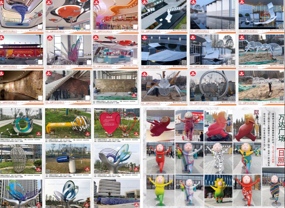 1.山东三友雕塑艺术有限公司,成立于2016年,集雕塑设计、制作、加工、安装为一体的雕塑企业。主营雕塑产品有不锈钢雕塑、玻璃钢雕塑、景观字等。