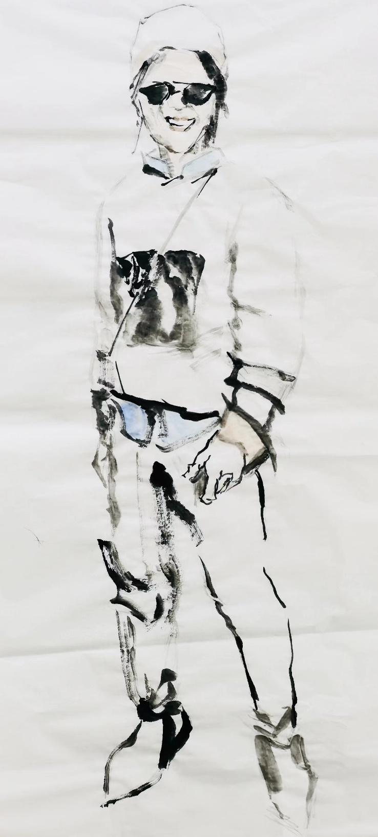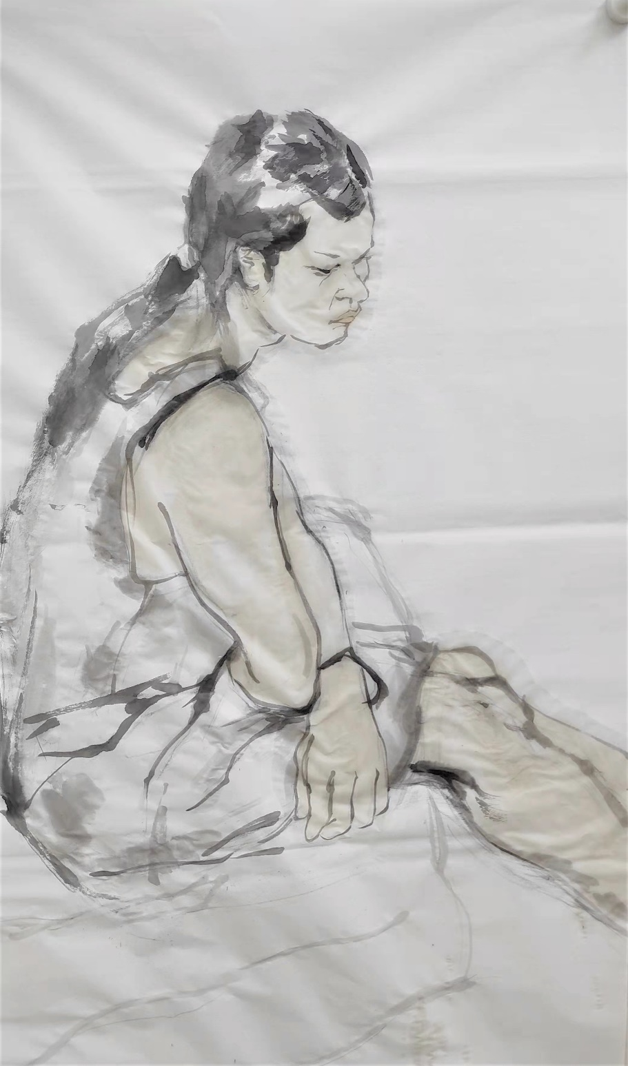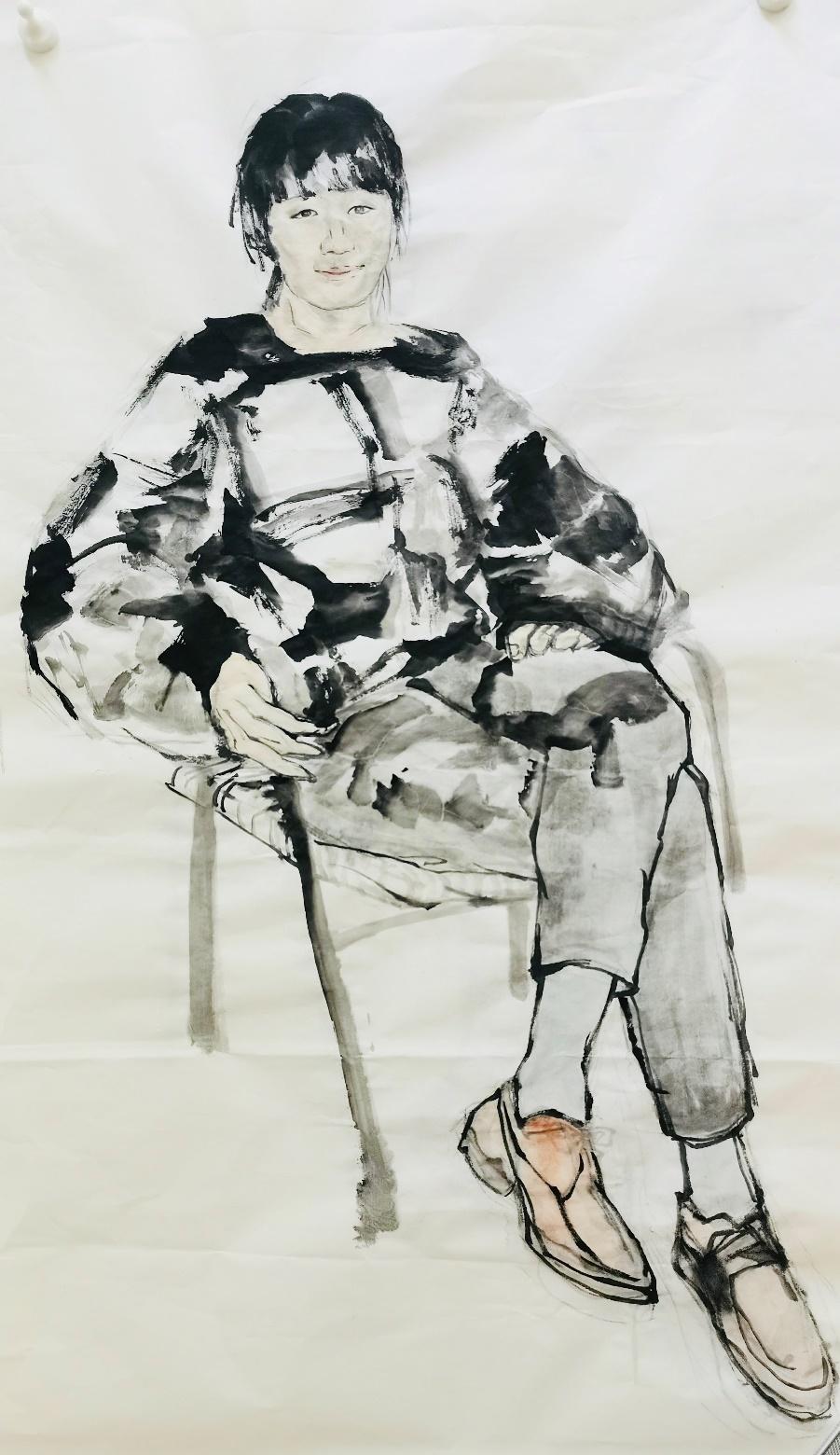 通过这几周的学习,之前我对人物并不是特别的敏感,然后在人物的一些方面可能会多多少少存在一些自己的问题。但是通过这几周的学习,首先我感觉对人物的外形上,通过一些大量的练习,就是手上功夫会熟练一些,对于结构骨点等处会有意识去留意处理,然后自己开始对人物会有一点自己的想法。然后在练习中,不论是一些线条还是墨色上,等等都会去注意。在提笔顿笔上会有灵活的走动,保持书写感,对于墨色的一些微妙变化也有了想法。我们对水墨的了解还是比较浅淡的,然后通过这几周顾老师的交流与输出,希望在之后会有更多的练习去不断的完善自己的水墨人物,去不断地抓住人物的造型与特征,感谢老师这段时间的指导。(20级国画人物本科班\李雯雯)