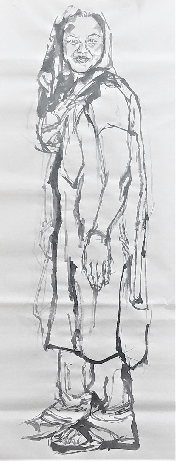 在近几周的课程当中,通过大量练习,让我感受到了水墨的很多不同的魅力。在水墨人物当中需要注意的方面很多,墨色的浓淡变化,以及干湿浓淡还有线的一些质感方面,都有了一些自己的心得感受。自己也是想去对人物的外观也好,还是对人物的一个局部特征也好,更想去抓住它去表达一种自己的感受。感谢顾老师在这段时间对我们的不断交流与指导,希望自己在接下来的课程和学习当中对水墨人物有更深的认识和理解,走进水墨。(20级国画人物班\崔金龙)