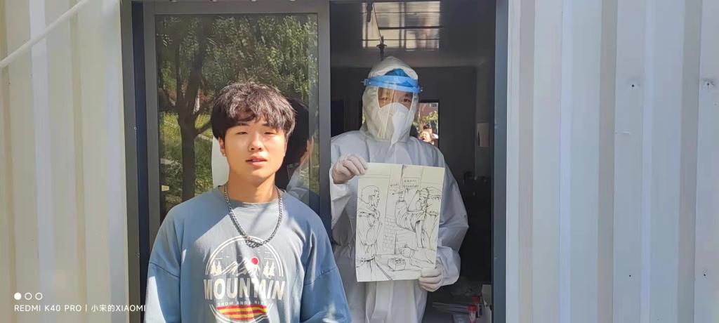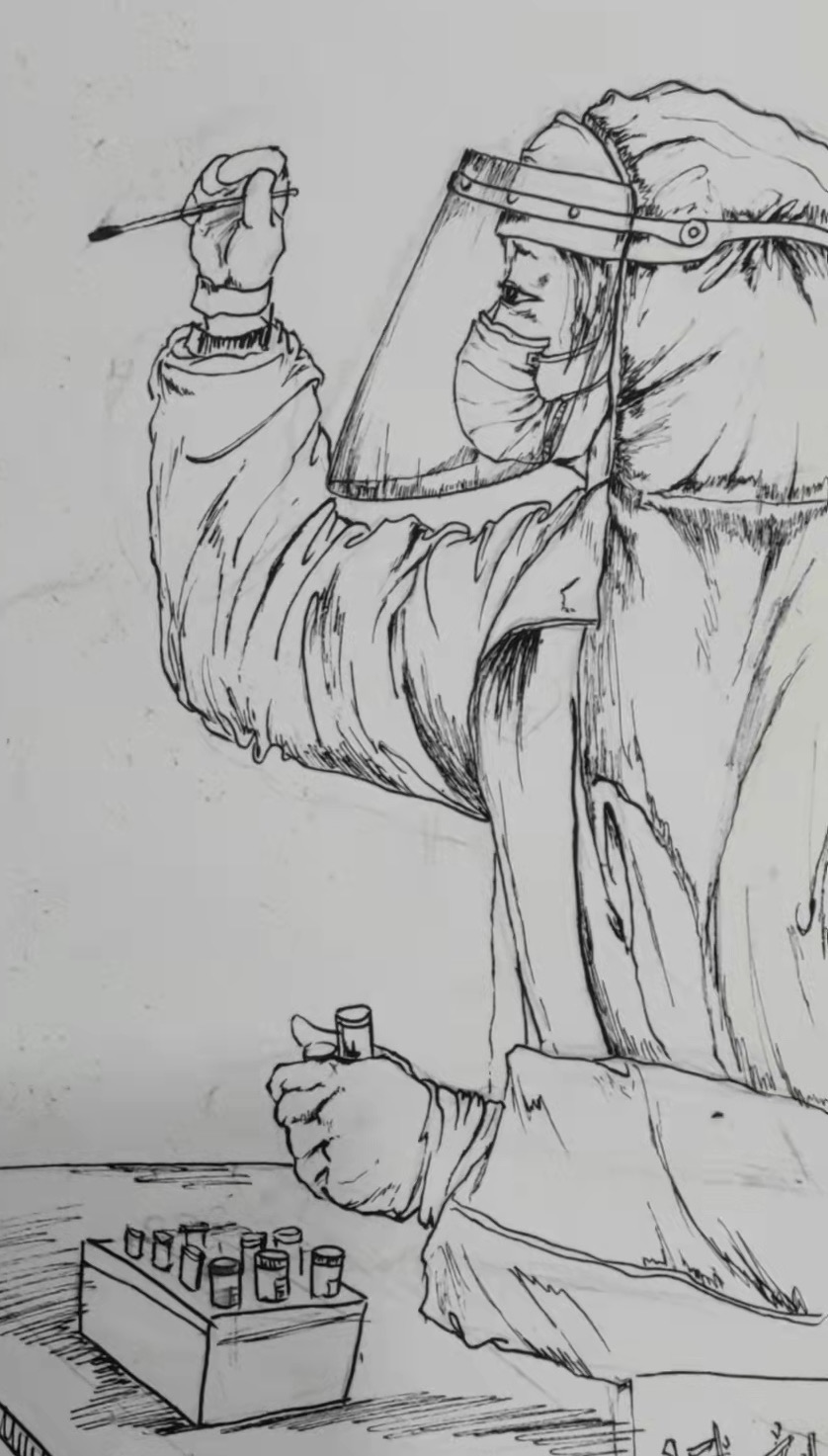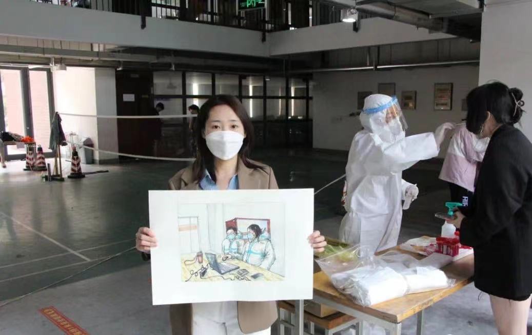 同学们以笔为戈,用心描绘出一幅幅接地气、暖人心的作品,将镜头中的瞬间定格在画纸上,记录下校园中抗击疫情的温情画面。同学们用艺术的语言凝聚人心,用手中的画笔呈现战疫先锋们的无私奉献和英勇精神,描绘他们眼中流露出的温度、真情与坚定。