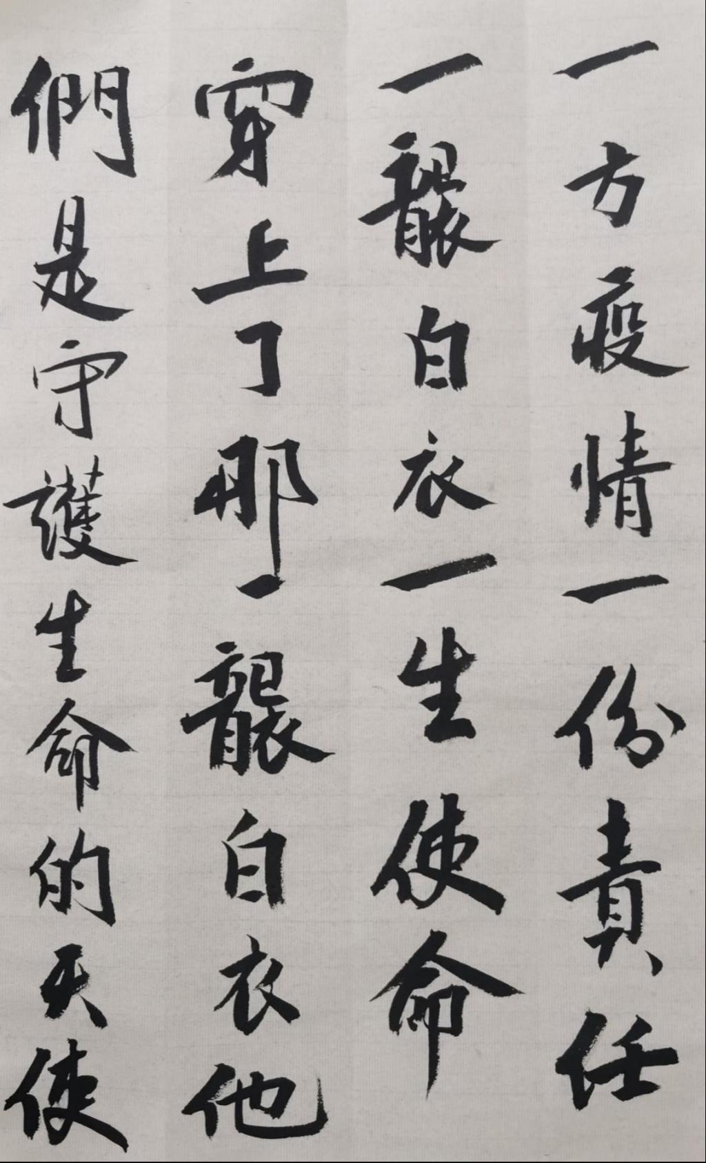 书法专业的同学也用毛笔表达着面对疫情的态度,书写真情。