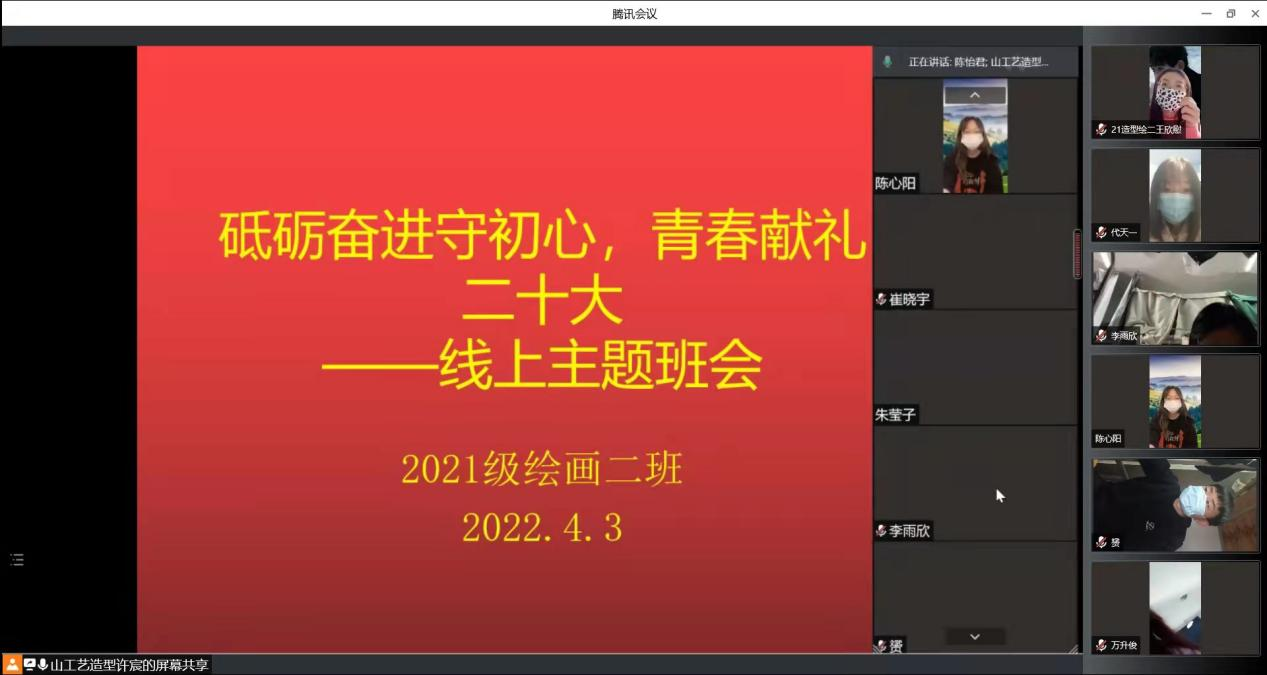 本次“砥砺奋进守初心,青春献礼二十大”云团课的开展,坚定了造型学子们抗疫必胜、青春建功的信心和决心,大家纷纷表示要用党的创新理论武装自己,做时代进步的开拓者、做时代前进的先锋兵,为实现中华民族伟大复兴的中国梦奉献自己的青春力量!