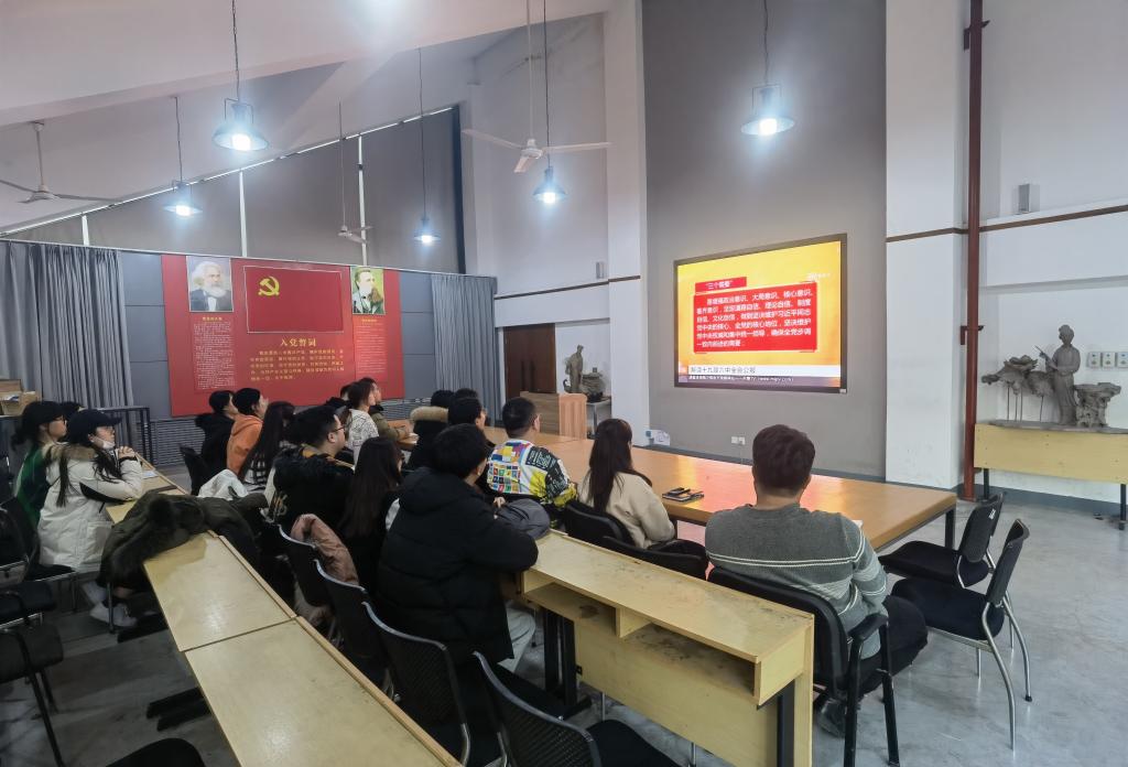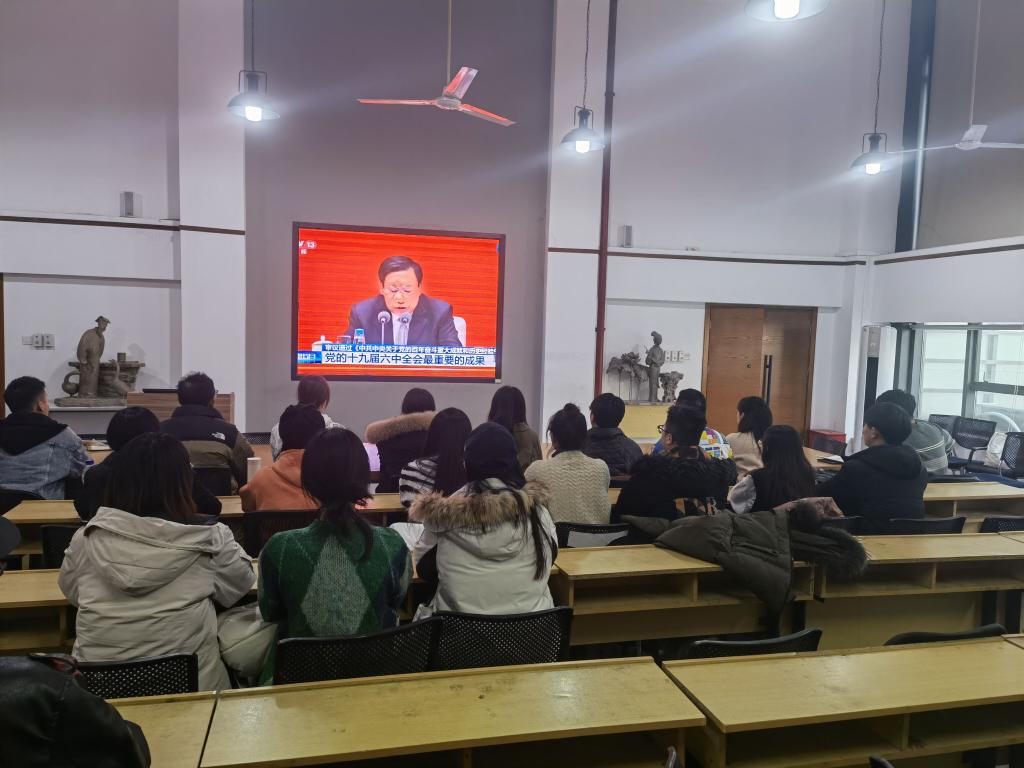 11月26日,造型艺术学院学生党支部书记王晓琼、学生党支部副书记许威治、辅导员谢军及全体学生党员共同观看了党的十九届六中全会报告会。全会提出,不忘初心,方得始终。中国共产党立志于中华民族千秋伟业,百年恰是风华正茂。过去一百年,党向人民、向历史交出了一份优异的答卷。现在,党团结带领中国人民又踏上了实现第二个百年奋斗目标新的赶考之路。全党要牢记中国共产党是什么、要干什么这个根本问题,把握历史发展大势,坚定理想信念,牢记初心使命,始终谦虚谨慎、不骄不躁、艰苦奋斗,不为任何风险所惧,不为任何干扰所惑,决不在根本性问题上出现颠覆性错误,以咬定青山不放松的执着奋力实现既定目标,以行百里者半九十的清醒不懈推进中华民族伟大复兴。全会强调,全党必须永远保持同人民群众的血肉联系,践行以人民为中心的发展思想,不断实现好、维护好、发展好最广大人民根本利益,团结带领全国各族人民不断为美好生活而奋斗。