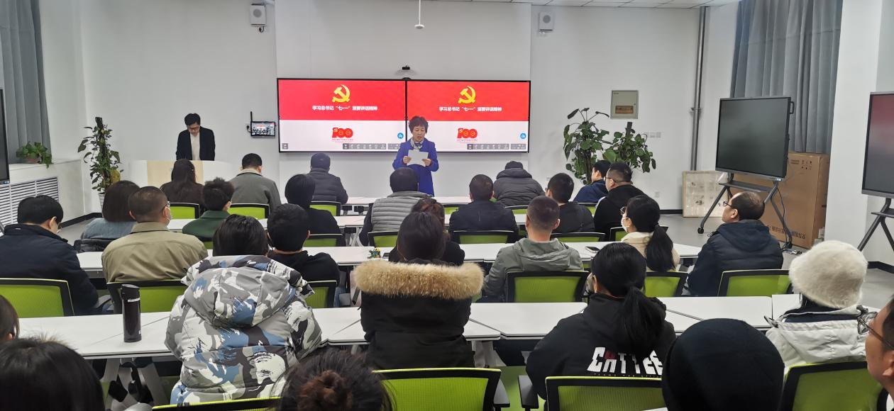 2021年11月15日上午10点,造型艺术学院党总支组织全体师生党员,在学院二楼多媒体教室听取了学校党史宣讲团成员、马克思主义学院教师桑伟华讲授的党课《学习习近平总书记“七一”重要讲话精神》。本次党课由造型艺术学院党总支书记牛序茜主持。牛序茜传达了学校党史学习教育的要求,并对桑伟华老师进行了介绍,造型艺术学院全体师生党员听取党课。