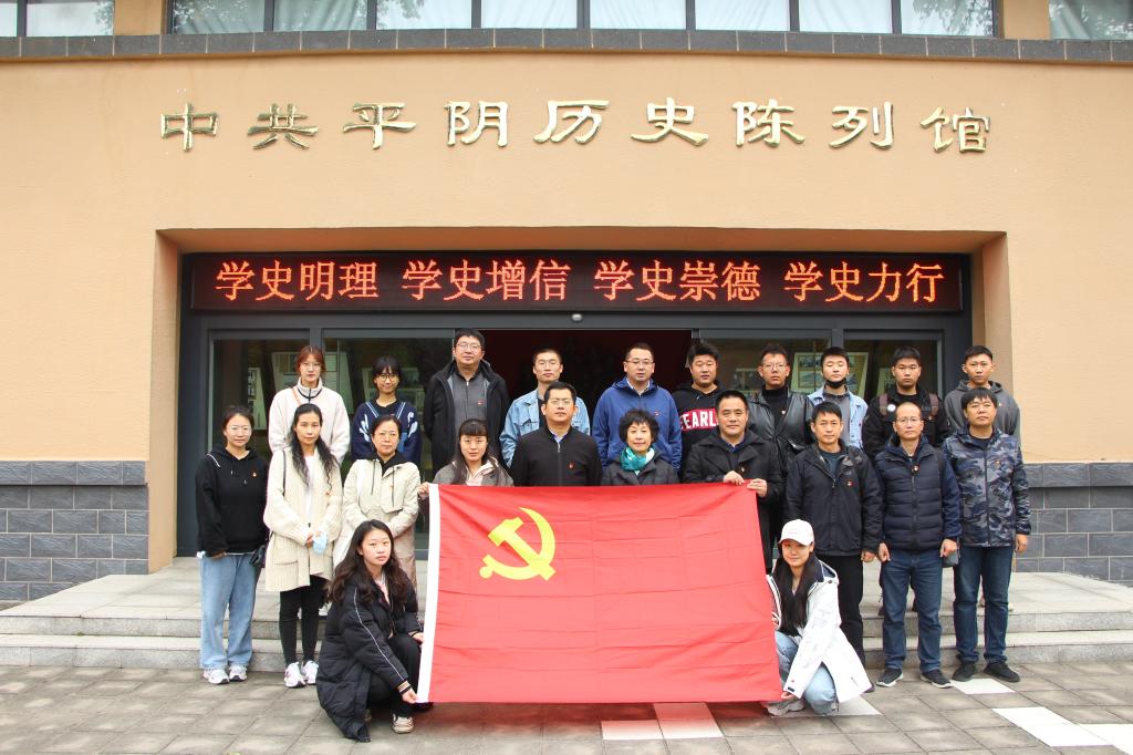 造型艺术学院参加本次学习培训的全体师生党员分别在中共平阴历史陈列馆和平阴县第一个党支部纪念馆前合影留念。