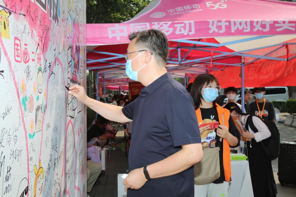 本次迎新工作受到学校高度重视,9月10日上午,校领导亲临现场,询问家长对学校的意见与建议,慰问辛勤服务同学的志愿者,了解学院新生报到情况并与新生进行友好交流。13日,党委书记何思清、党委副书记苗登宇等领导来到迎新现场,对本次迎新工作表示关心和支持,表达了对新生日后大学生活的关怀和期许,并在绘画签名板上留下了签名。