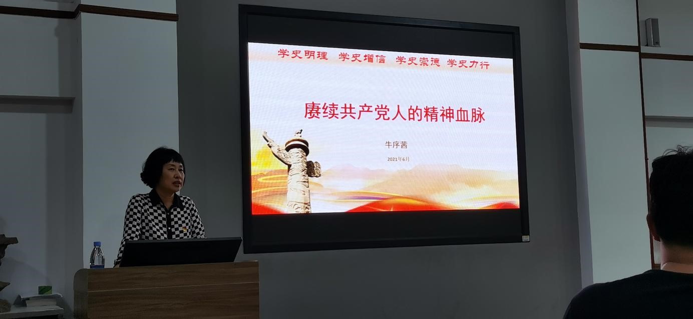 课上,牛序茜讲到:“中国共产党百年历史,就是一部党团结带领人民艰苦创业、持续奋斗,善于学习、勇于革命,改革创新、砥砺奋进的历史。学习历史,可以看成败、鉴得失、知兴替。必须把党的历史学习好、总结好,把党的成功经验传承好、发扬好。”