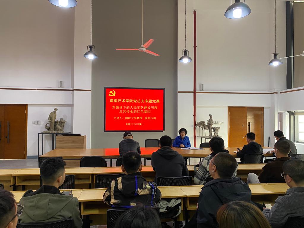 会议伊始,牛序茜向全体党员传达了学校党史学习教育实施方案内容和党委书记何思清同志讲话精神,介绍了造型学院党史学习教育实施方案内容。随后就造型学院开展党史学习教育做动员讲话。牛序茜在动员讲话中说,一要高度重视党史学习教育。开展党史学习教育对于总结历史经验、认识历史规律、掌握历史主动,对于传承红色基因、牢记初心使命、坚持正确方向,意义重大。二要认真落实学校提出的各项任务。党史学习教育每个阶段都有一系列活动相对应。围绕“一个主题品牌、一套系列活动、一堂专题党课、一组生活会议”,这“四个一”,推动党史学习教育深入基层、深入师生、深入人心。三是要学做结合踏实做好本职工作。希望党员同志们从党史学习教育中汲取丰富智慧,从造型学院教学工作和专业特点出发,围绕一流专业建设、专业高质量内涵发展、统筹推进疫情防控和重点工作以及日常教学、管理工作,对照自己的初心使命,强化责任担当,落实好“思政+美术”的课程思政模式,把学习成效转化为工作动力,每一位党员同志都能够在各项工作中取得实效。