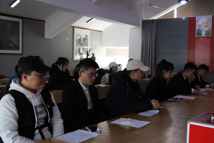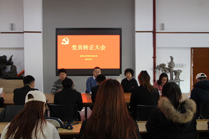 1月7日上午,造型艺术学院学生党支部于党建活动室召开预备党员转正大会。会议由造型艺术学院学生党支部书记王晓琼主持,学生党支部副书记许威治、辅导员谢军、全体党员参加本次会议,党总支书记牛序茜列席会议。