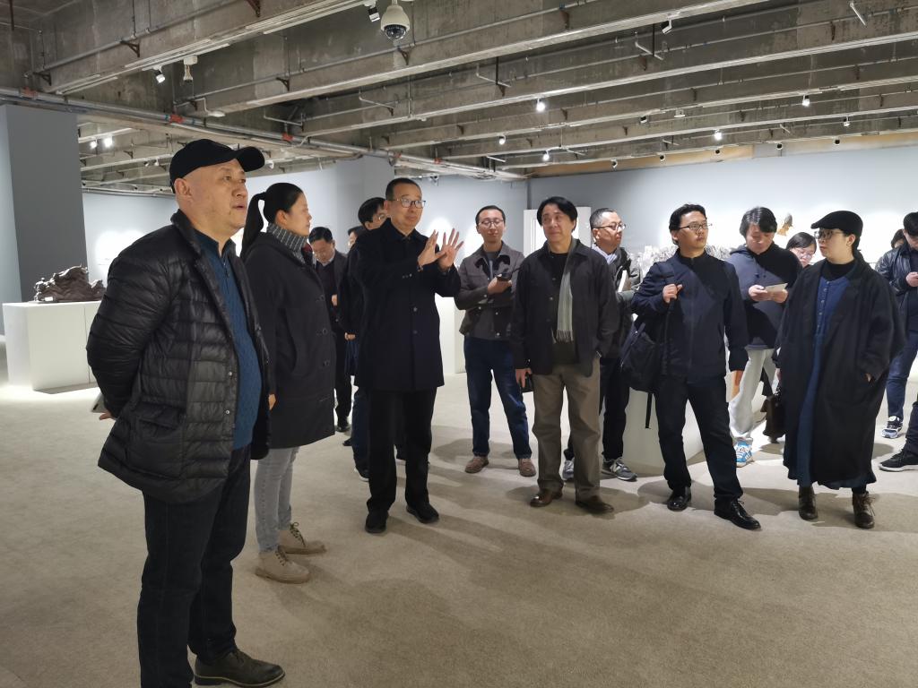 在李勇院长陪同与引导下,潘鲁生院长认真观摩了造型艺术学院新进教师的艺术作品,并与新进教师们在艺术创作的问题上进行了探讨,对造型艺术学院的新进教师提出了教学科研上的新要求。他指出,艺术创作要与时代相结合,建议新进教师在今后的创作中应该着重加强重大现实题材的主题性创作。在题材的选择上一定要突出典型性,同时,也要加强地域性与民族性的融合,主体性和思想性的融合,以及内容与形式的融合,这些问题都可以在重大题材的创作中得到进一步的解决。