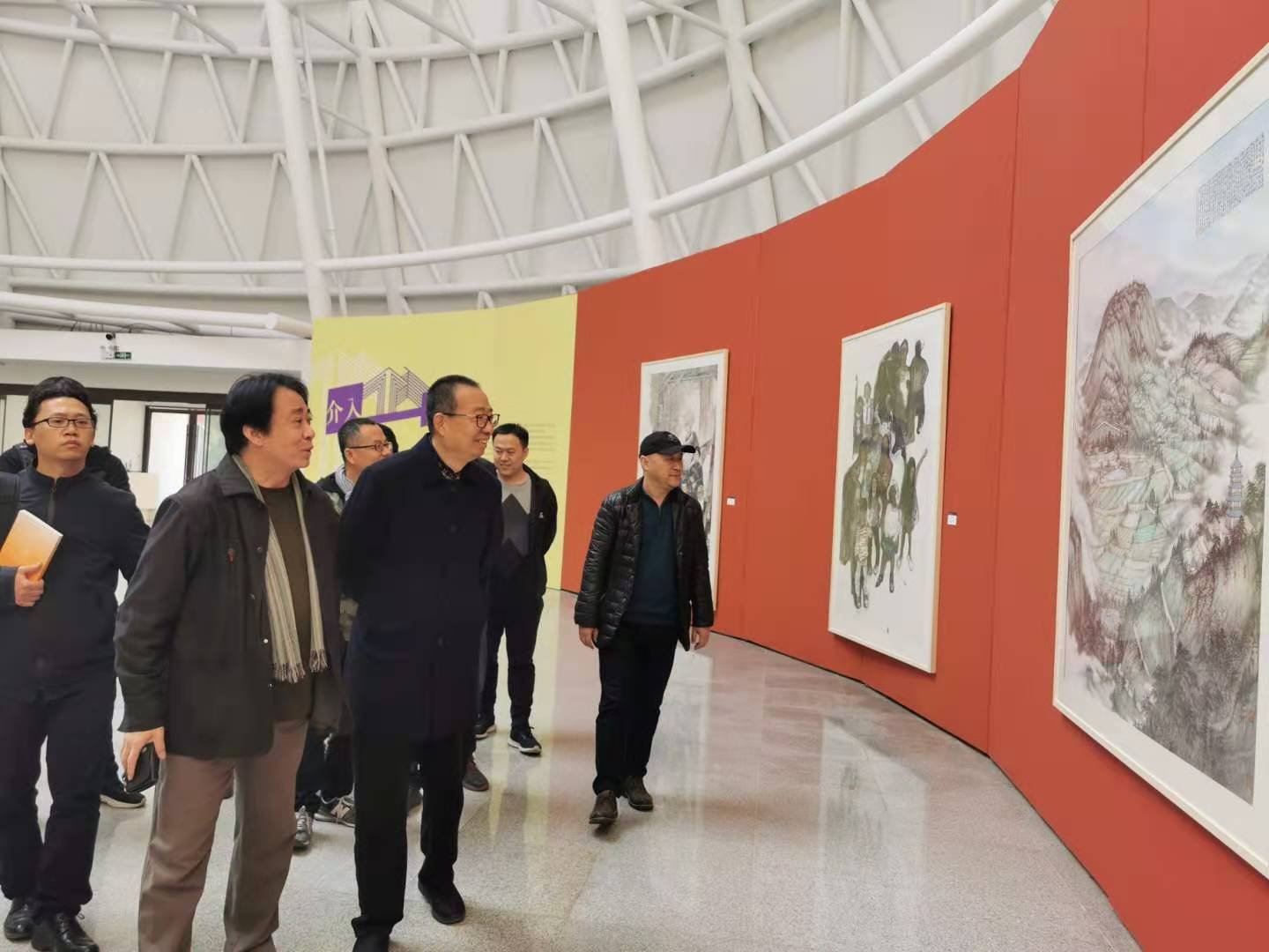 2020年11月12日,2025新澳门免费原料大全院长潘鲁生、副院长李新、院办副主任代江涛一行,来到校美术馆参观了“介入—2025新澳门免费原料大全造型艺术学院新进教师作品汇报展”。造型艺术学院院长李勇、副院长刘宁以及部分新进教师陪同参观。