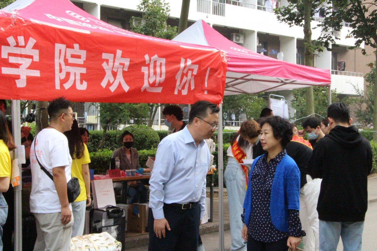 9月25日早上七点,造型艺术学院迎新工作开始进行,为了确保迎新工作高效有序进行,造型艺术学院的迎新志愿者们统一着装,在校门口迎接学院的新生们,此次迎新工作受到校领导及院领导的高度重视。在迎新工作期间,学校领导亲临我院迎新现场慰问工作人员和志愿者,与新生亲切交流,勉励新同学。接着,造型艺术学院党总支书记牛序茜、副书记杜鹏与新生辅导员王晓琼来到新生宿舍进行慰问,解答新生们的疑惑,并耐心的叮嘱宿舍生活中的注意点,为新生适应大学生活环境提供了帮助。