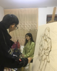 3、通过以家人为模特,进行写生的小色稿练习。让家人参与到教学活动中,拉近师、生与家长距离。