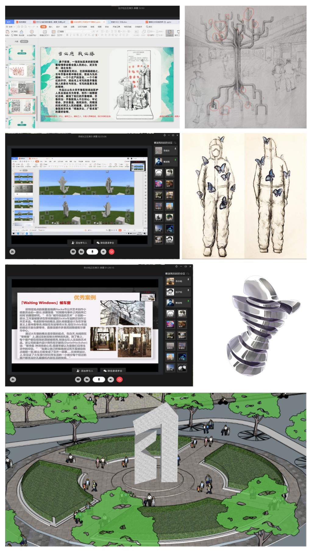 在实际的课程方案设计过程中,每个同学的出发点不同,在充分考虑学生的主观意愿和作品思想前提下,结合当前抗击疫情的实际,调动学生主观能动性,引导走向艺术表现的高度和深度,使其作品方案具有较高的思想内涵和艺术水准。当然作品设计还要能够落地,关键是结合环境雕塑的设计规律及特点,根据具体的环境要求,来完成符合环境要求、具有时代特色的环境雕塑方案。